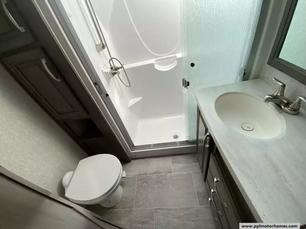 (Floor plan is NOT drawn to scale. Length of vehicle is approximate. Buyer is responsible for verifying actual length. PPL Motor Homes compiled this list of features, specifications, equipment and options as a guide. No representation or warranties, either express or implied, are made as to the accuracy of the information herein. Please verify for yourself all items listed before purchase.)