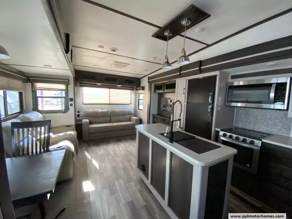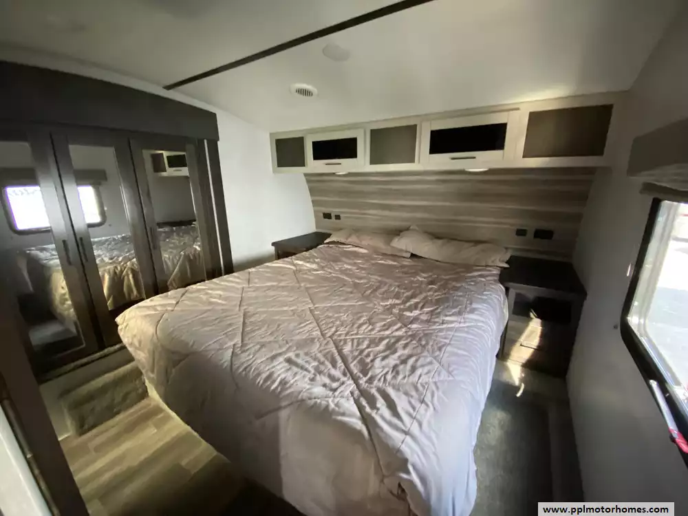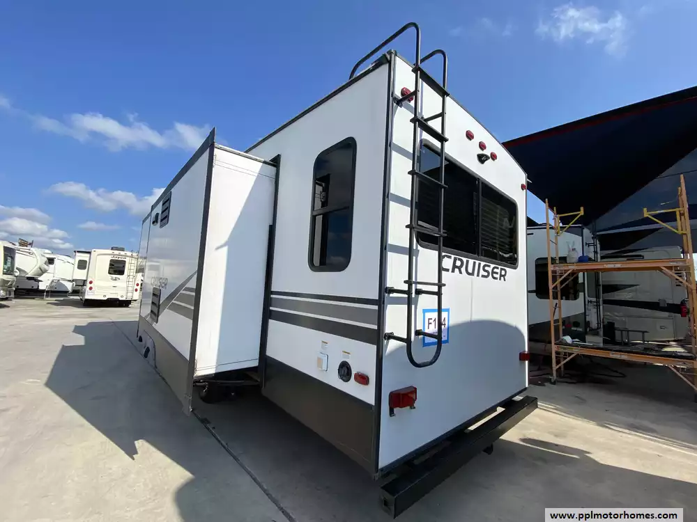 This 2020 Cruiser Aire 29SI has an Electric Landing Gear, 3 Slide-outs, 1 Non-Ducted And 1 Ducted Air Conditioner, Double Door 12v Dometic Refrigerator, Automatic Main Awning, Heated Tanks, Outside Speakers, Outside Shower, Fireplace, Microwave, 3 Burner Range, Oven