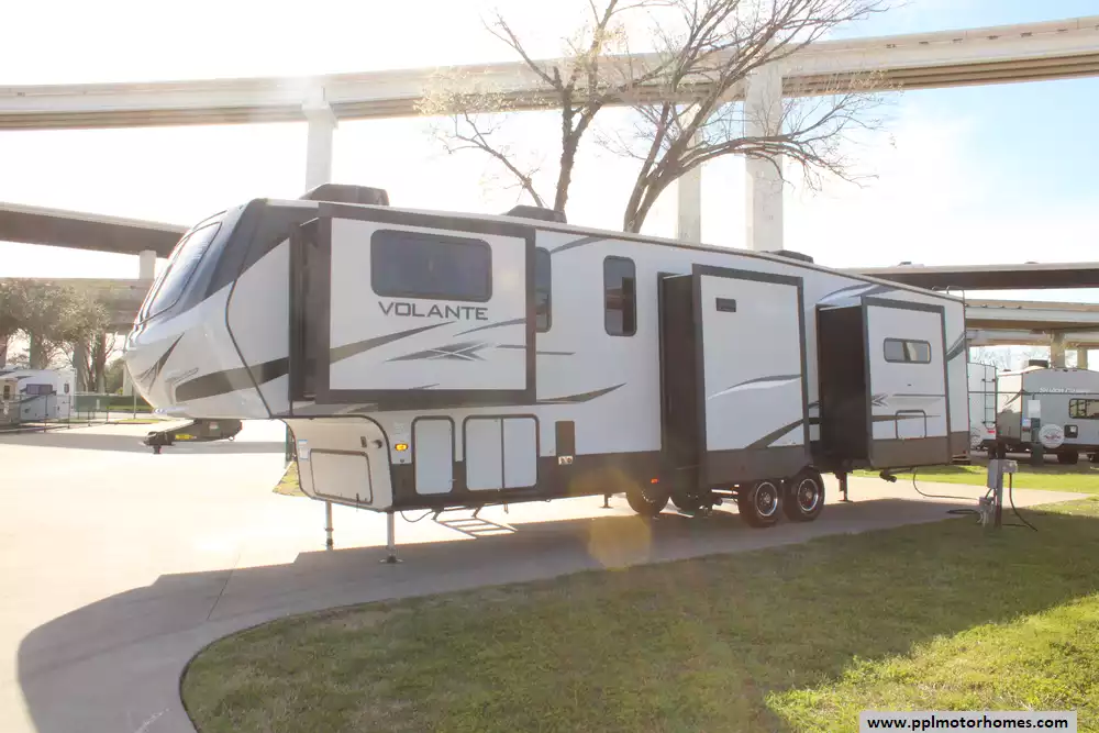 This 2020 Volante 3851FL is a luxurious fifth-wheel RV that combines spacious living, elegant design, and modern amenities to provide an exceptional travel experience. With its thoughtful layout and high-quality construction, this model is perfect for families or couples seeking comfort and convenience on the road..Amenities Include...5 Slide-outs, 1 Non-Ducted And 2 Ducted Air Conditioner, 4 Door Residential Everchill Refrigerator, Automatic Main Awning, Washer/Dryer Connections, Satellite Dish,MorRyde Steps,Theatre Seating, Outside Speakers, 2 TVs, DVD Player, Outside Shower, Microwave, 3 Burner Range,and Oven.It offers a luxurious and comfortable travel experience for discerning RV enthusiasts. With its spacious living areas, modern amenities, and attention to detail, it's the perfect choice for those who refuse to compromise on comfort and style while exploring the open road.