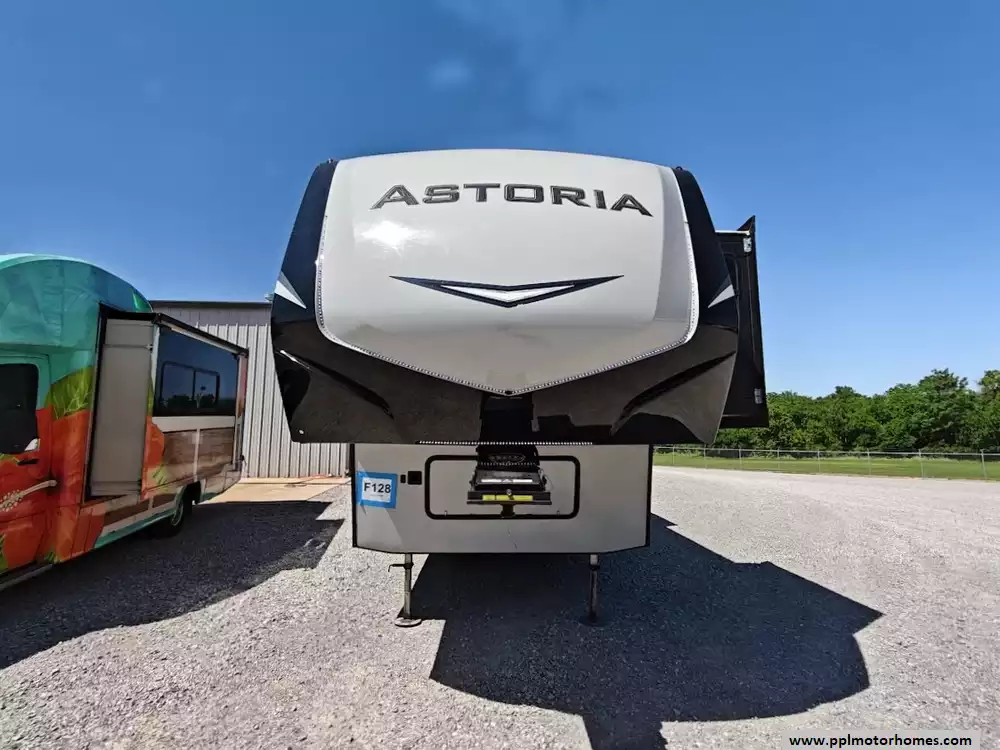 Experience the perfect blend of residential luxury and rugged versatility with this 2020 Astoria 3173RLT. Known for having one of the tallest bedroom heights in the mid-profile segment, this 36.8 foot fifth wheel offers an incredibly airy and spacious interior enhanced by three power slide-outs. The rear living area is designed for both relaxation and entertaining, featuring a cozy fireplace and a gourmet-style kitchen equipped with a large 4-door gas/110v Dometic refrigerator, microwave, 3-burner range, and oven. Whether you are planning a weekend getaway or preparing for full-time travel, the washer/dryer connections and ample storage ensure you have all the comforts of home wherever the road leads.