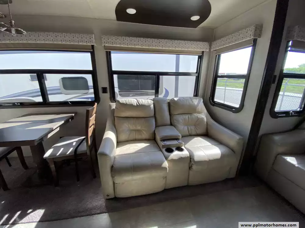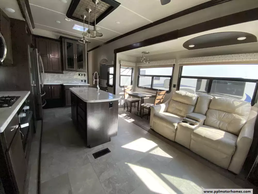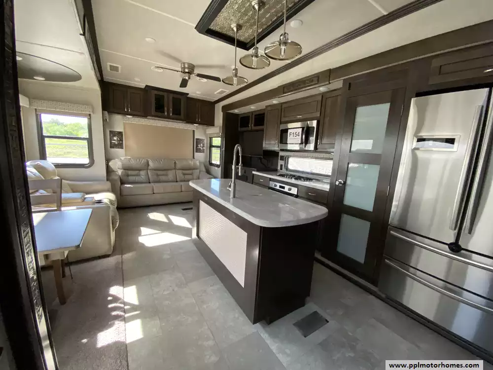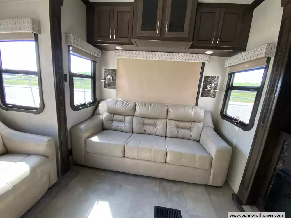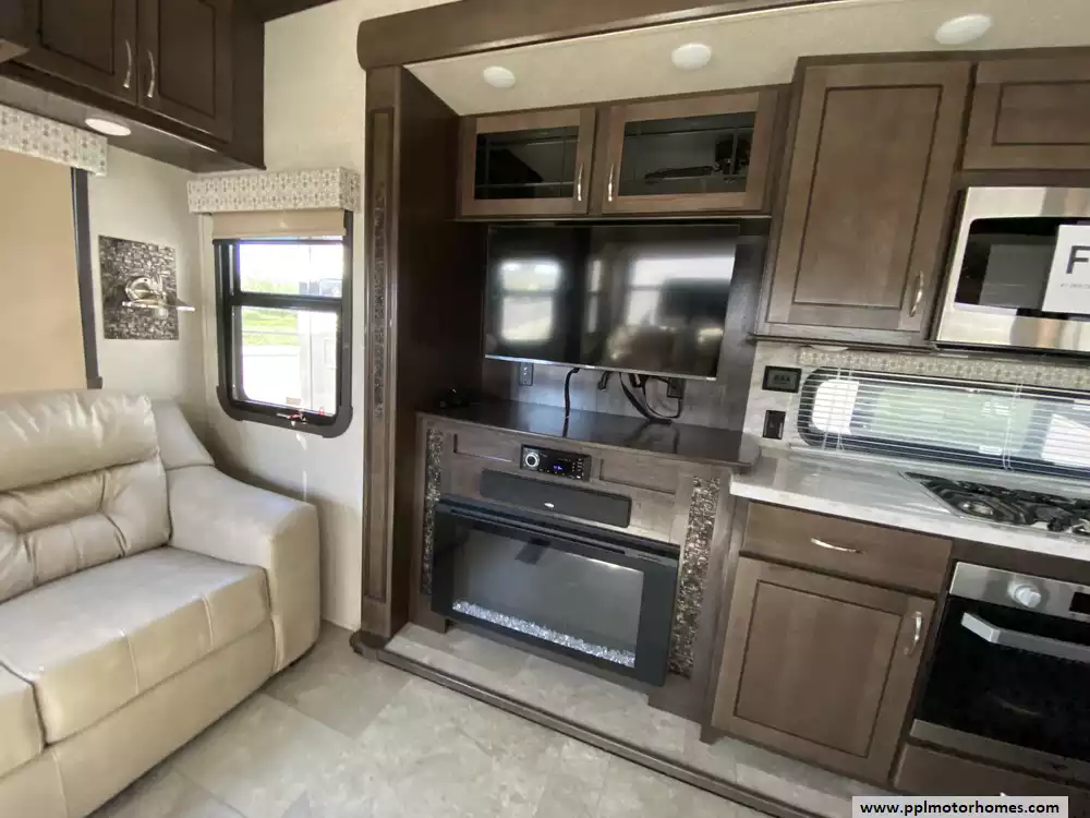 This 2020 Cedar Creek Hathaway 36CK2 has an Electric Landing Gear, 3 Slide-outs, 2 Ducted Air Conditioners, Double Door 110v Residential Insignia Refrigerator, In-Fridge Ice Maker, Automatic Main Awning, Washer/Dryer, Heated Tanks, Outside Speakers, 2 TVs, DVD Player, Outside Shower, Fireplace, Central Vacuum, Convection Microwave, 3 Burner Range, Oven