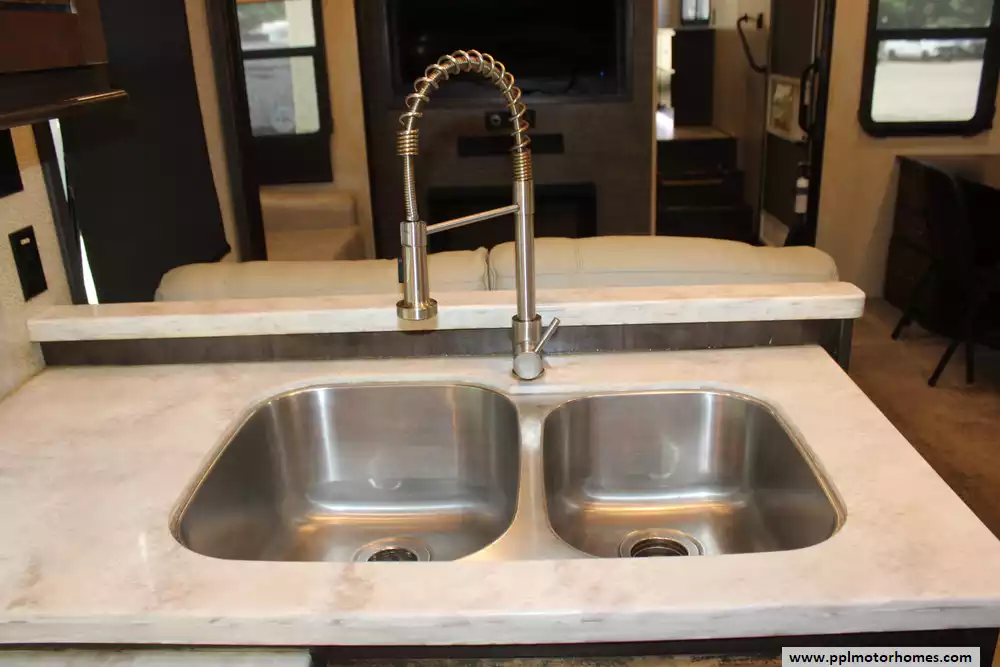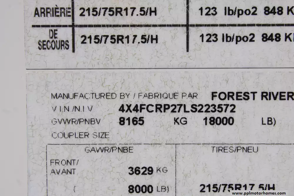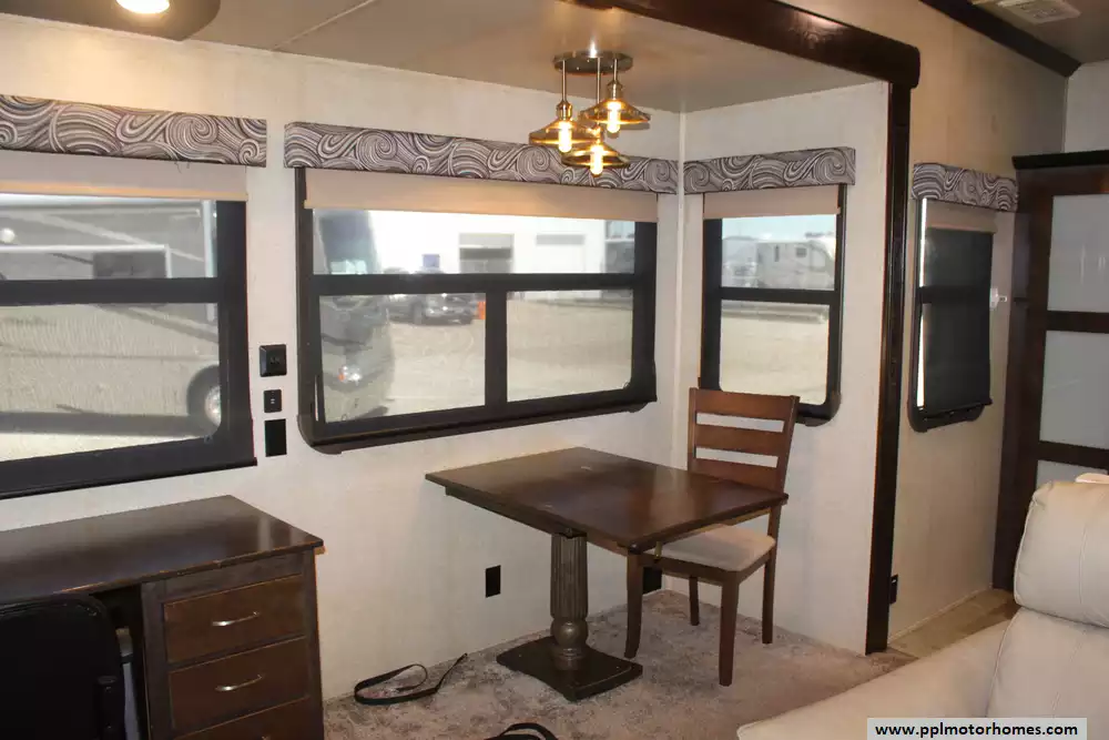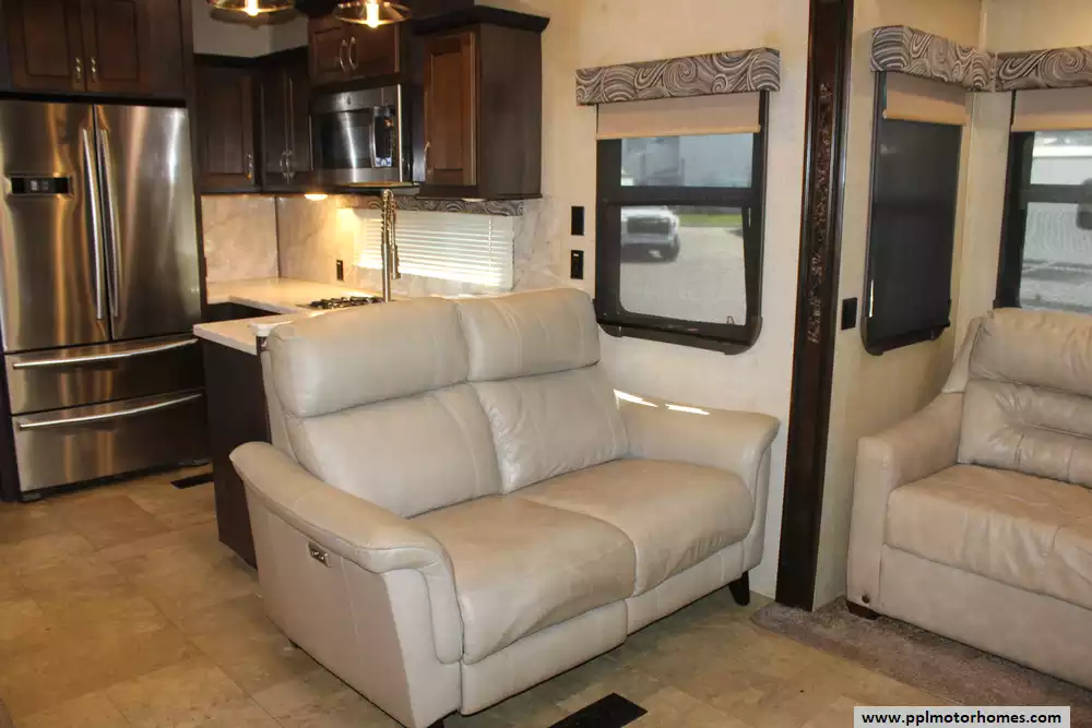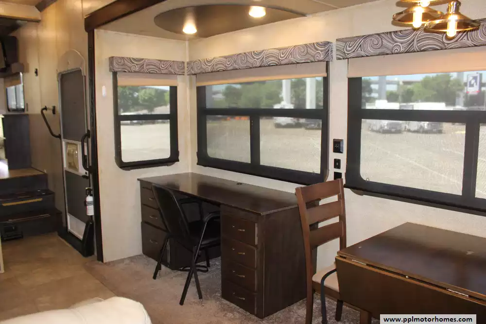Specs: Length: 40.4 ft., Height: 13.5 ft., Width: 8 ft., Payload Capacity: 5,132 lbs., Total Fresh Water Tank Capacity: 69 gal., Total Grey Tank Capacity: 80 gal., Total Black Water Tank Capacity: 40 gal.