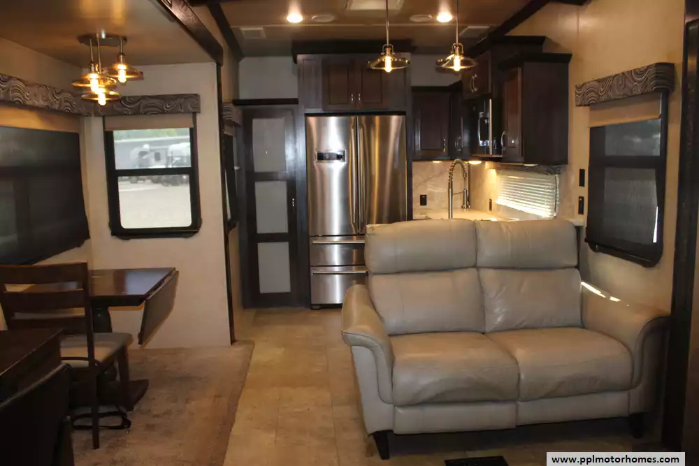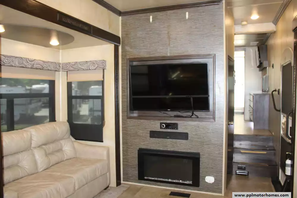 Experience the pinnacle of luxury full-time living with this 2020 Cedar Creek Hathaway 38DBRK. Renowned for its superior construction and residential-grade comfort, this 40-foot fifth wheel features a durable fiberglass exterior and three expansive slide-outs that create a remarkably open and airy floor plan. The interior is designed to feel like a high-end home, centered around a gourmet kitchen equipped with a double-door residential Insignia refrigerator, a stand-alone ice maker, a microwave, a three-burner range, and an oven. Whether you are hosting guests in the spacious living area by the cozy fireplace or utilizing the central vacuum system for easy cleanup, every detail of this Hathaway Edition emphasizes convenience and premium quality.