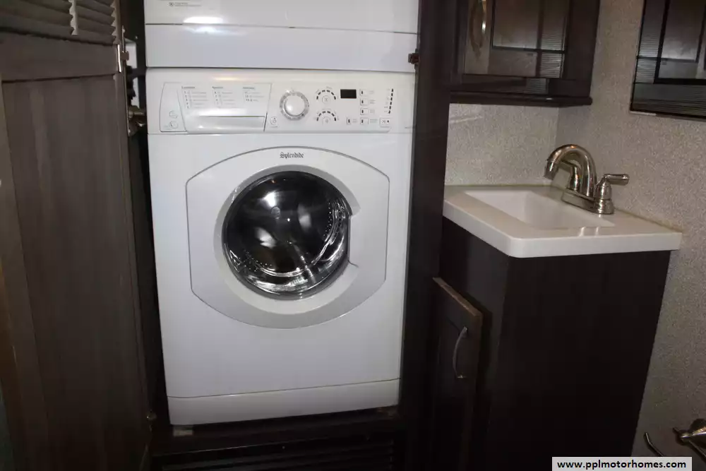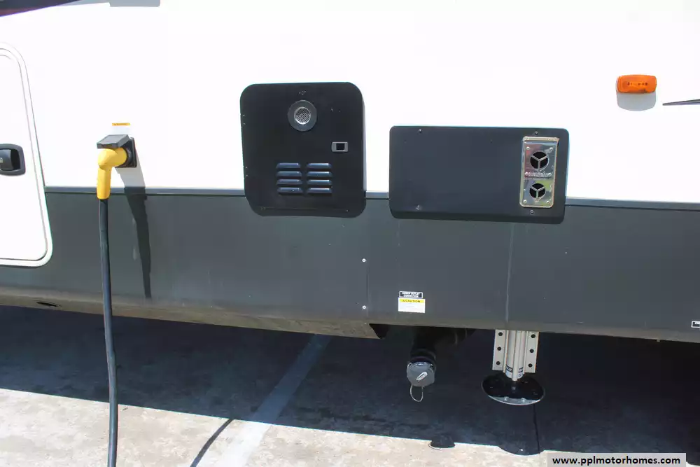 Equipped for all-season travel, this unit boasts two ducted air conditioners and a reliable rubber roof to ensure your comfort in any climate. The master suite and living area are complemented by two TVs and a DVD player, while the included washer and dryer set provides the ultimate convenience for extended stays. Step outside to enjoy the automatic main awning and integrated outside speakers, perfect for entertaining or relaxing outdoors. Complete with an outside shower and high-end amenities throughout, this well-maintained fifth wheel offers the perfect blend of sophisticated elegance and the rugged durability that Cedar Creek owners have come to trust.