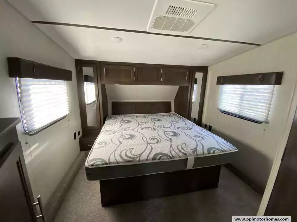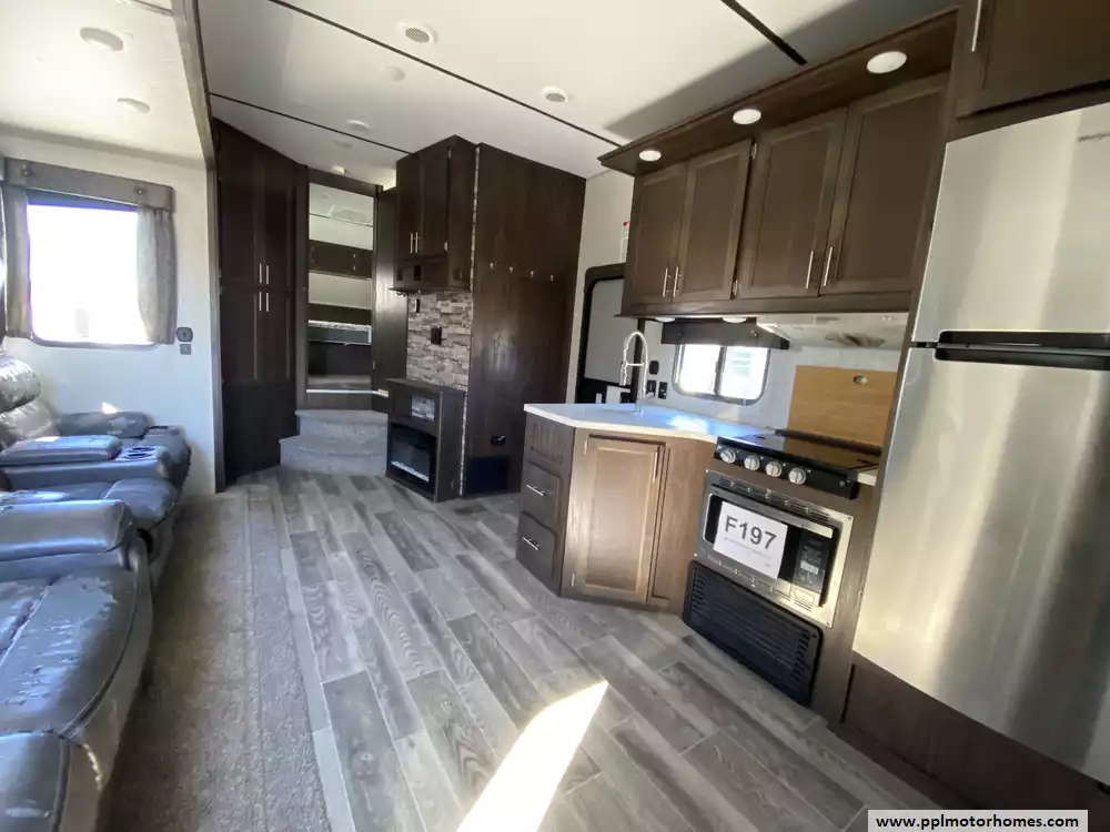 This 2020 Cherokee Wolf Pack 315PACK12 has a 1 Slide-out, Double Door 110v Whirlpool Refrigerator, Automatic Main Awning, Washer/Dryer Connections, Heated Tanks, Outside Speakers, Outside Shower, Fireplace, Microwave, 3 Burner Range