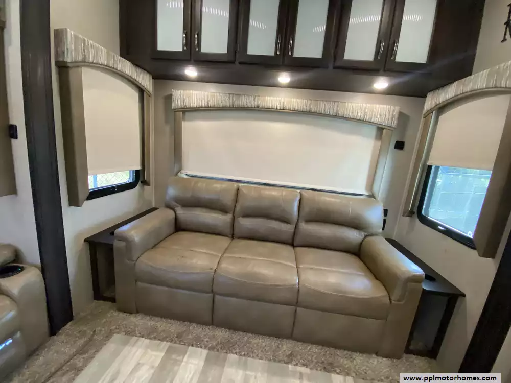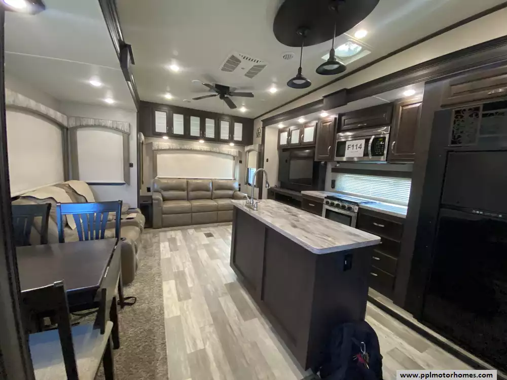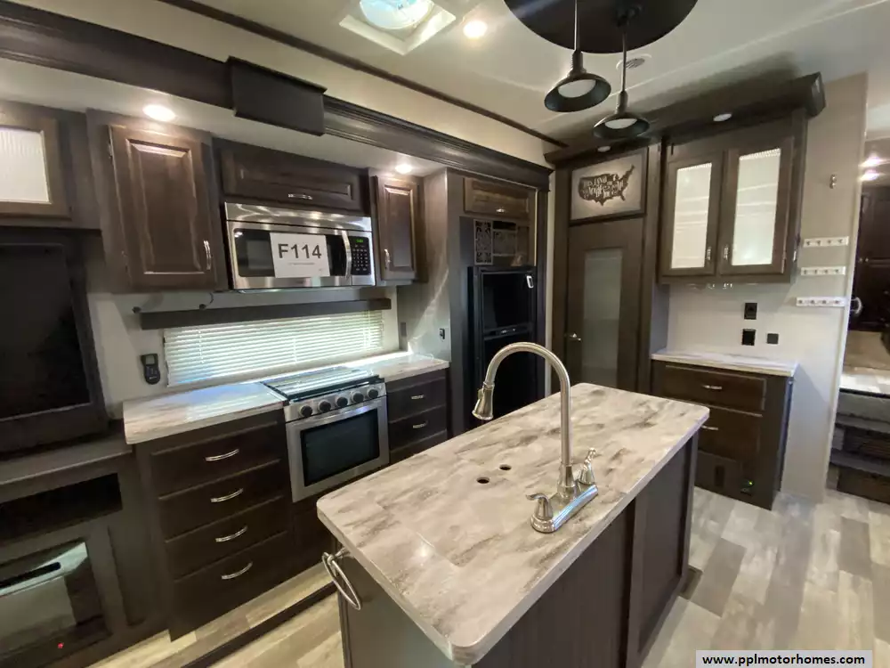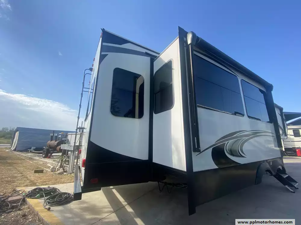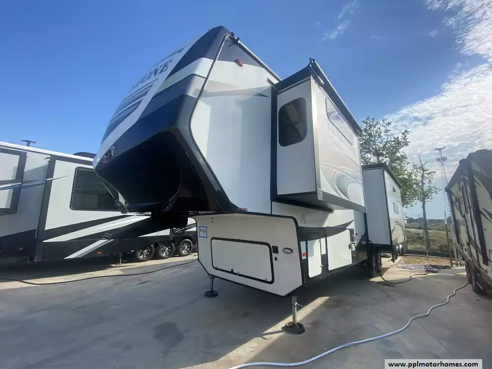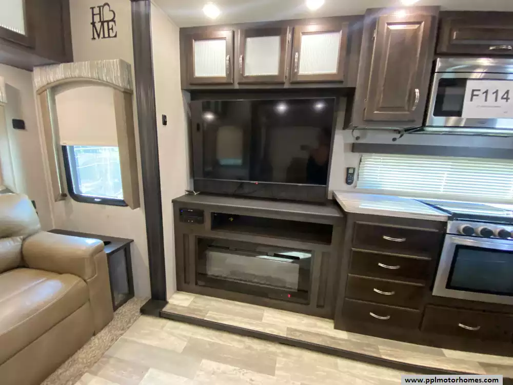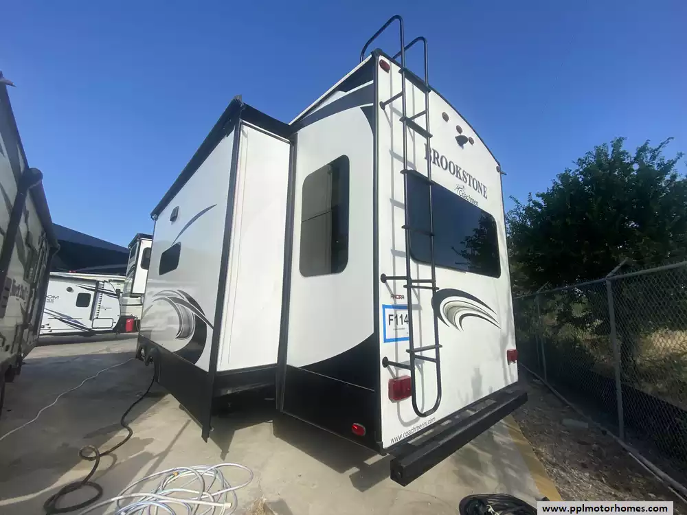 This 2020 Brookstone 310RL has an Electric Landing Gear, 3 Slide-outs, 2 Ducted Air Conditioners, Double Door Gas/110v Norcold Refrigerator, Automatic Main Awning, Washer/Dryer Connections, Outside Speakers, 2 TVs, DVD Player, Outside Shower, Fireplace, Microwave, 3 Burner Range, Oven. New roof installed and new tires.