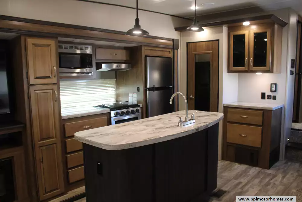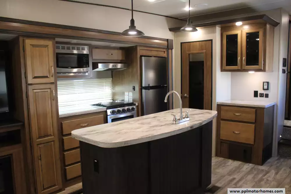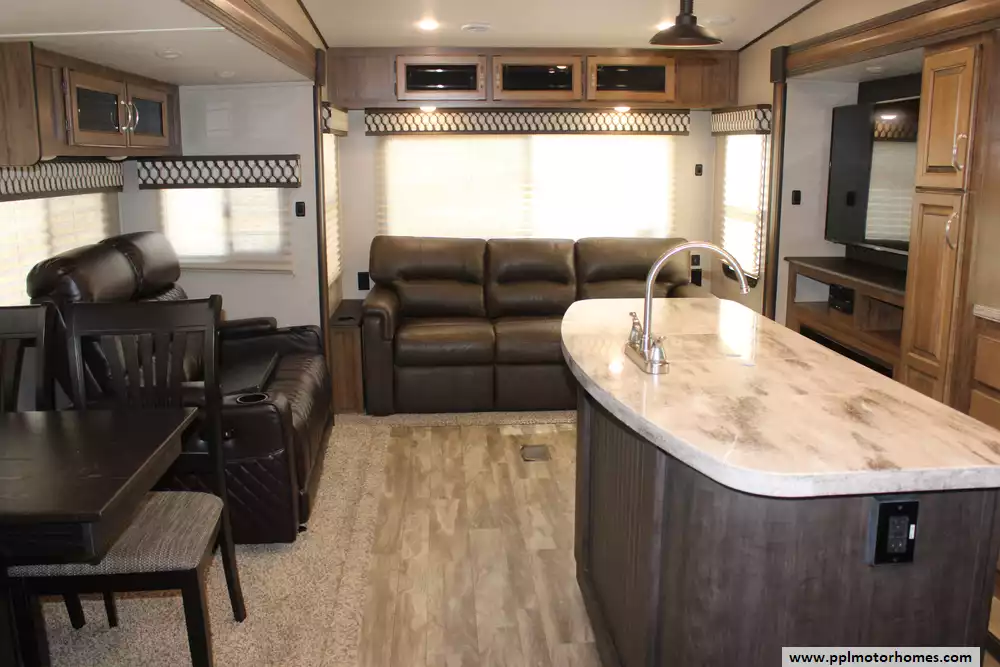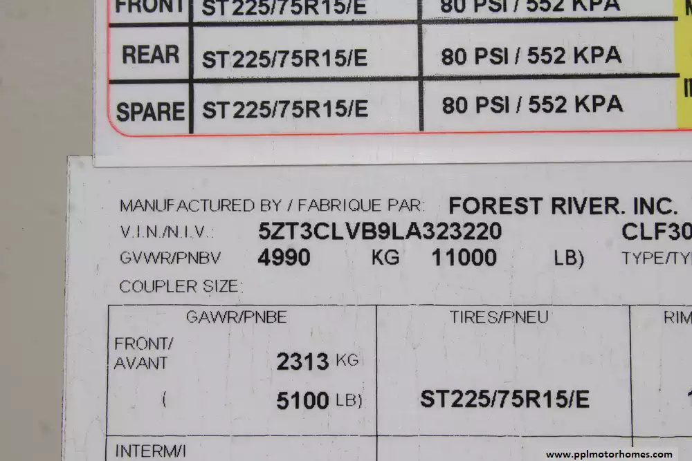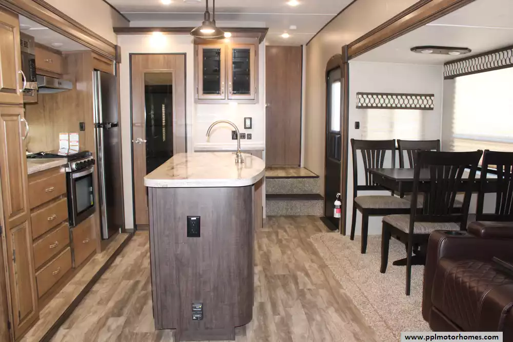 Specs: Length: 34.2 ft., Height: 12 ft., Width: 8 ft., Payload Capacity: 2,020 lbs., Total Fresh Water Tank Capacity: 40 gal., Total Gray Water Tank Capacity: 66 gal., Total Black Water Tank Capacity: 33 gal.