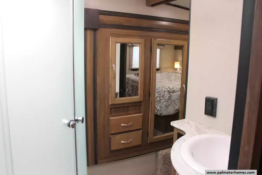 (Floor plan is NOT drawn to scale. Length of vehicle is approximate. Buyer is responsible for verifying actual length. PPL Motor Homes compiled this list of features, specifications, equipment and options as a guide. No representation or warranties, either express or implied, are made as to the accuracy of the information herein. Please verify for yourself all items listed before purchase.)