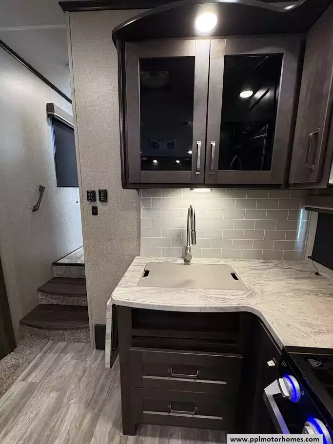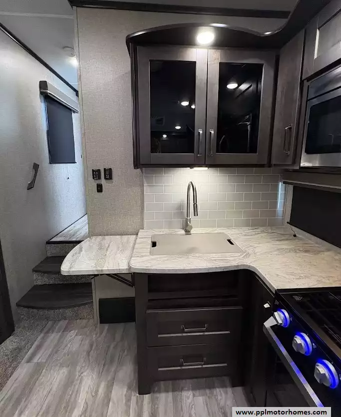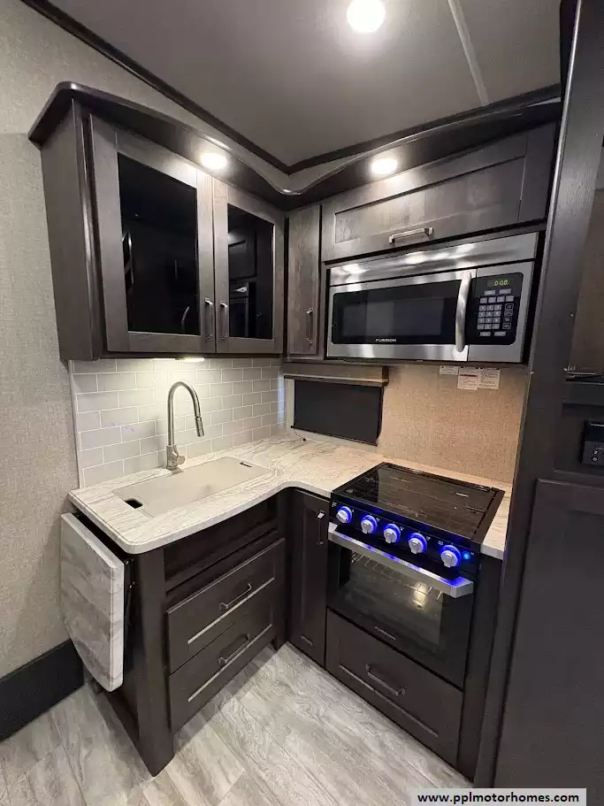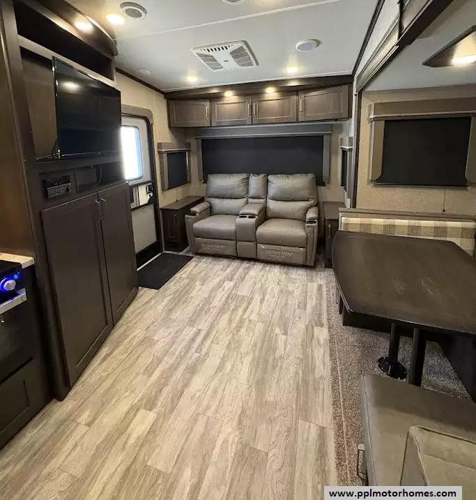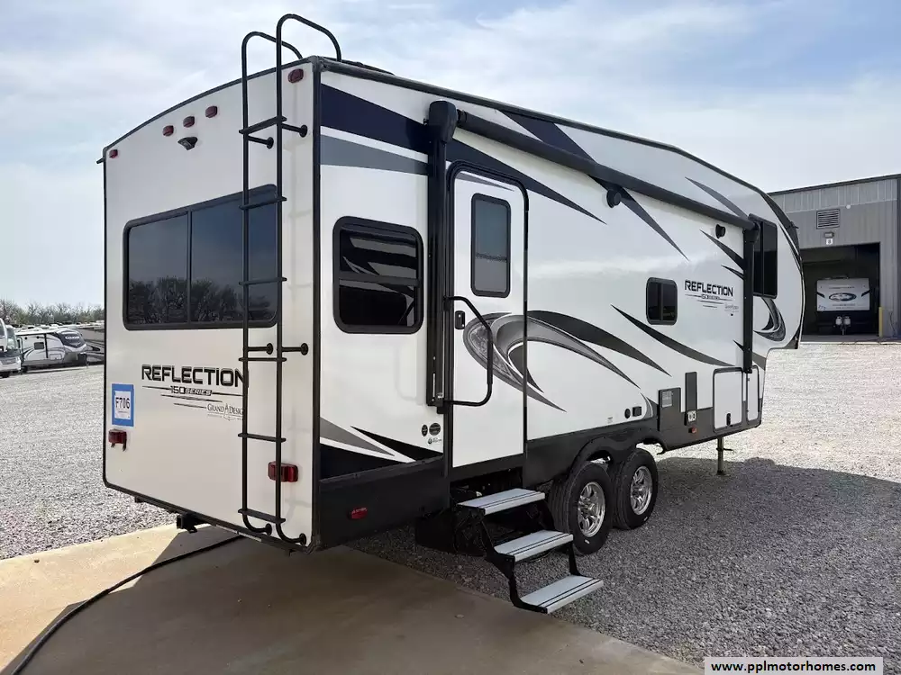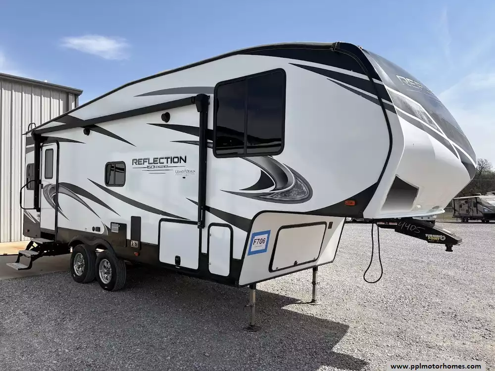 The 2020 Grand Design Reflection 230RL is the gold standard for luxury fifth wheels in a compact, easy-to-tow package. Known as part of the acclaimed 150 Series, this 29-foot fiberglass model is specifically engineered for effortless maneuverability and half-ton towability without sacrificing the high-end residential comfort Grand Design is famous for. The open rear-lounge layout is bathed in natural light and kept perfectly comfortable in any climate by two ducted air conditioners. The gourmet-ready kitchen is fully equipped with a three-burner range, oven, microwave, and a versatile double-door Dometic refrigerator, making it the ideal choice for couples seeking premium features in a nimble, manageable frame.