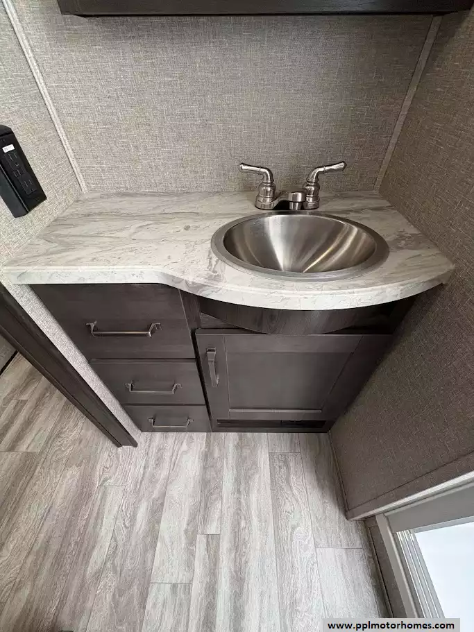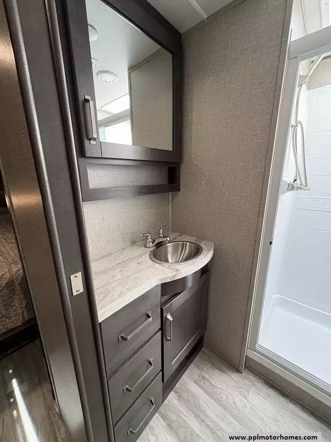 (Floor plan is NOT drawn to scale. Length of vehicle is approximate. Buyer is responsible for verifying actual length. PPL Motor Homes compiled this list of features, specifications, equipment and options as a guide. No representation or warranties, either express or implied, are made as to the accuracy of the information herein. Please verify for yourself all items listed before purchase.)