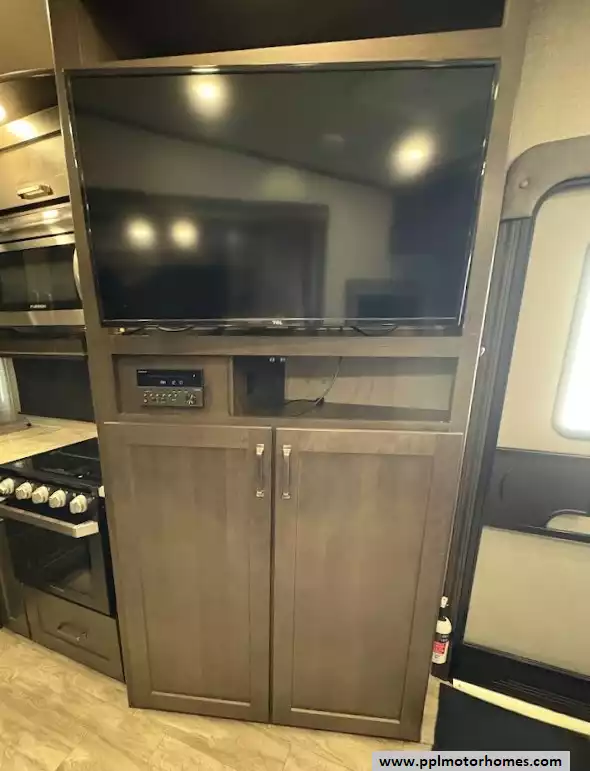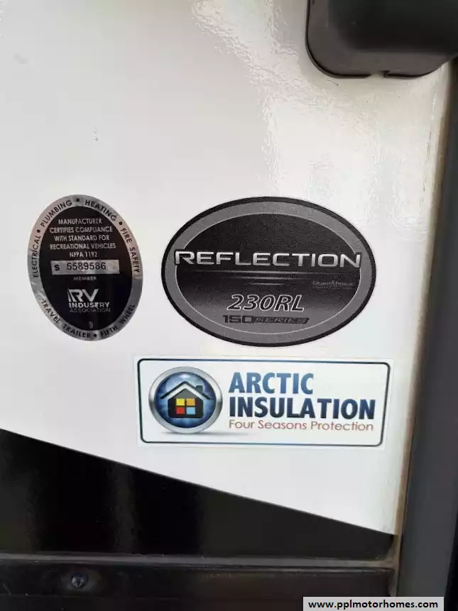 Setting up camp is seamless with the electric landing gear and a spacious slide-out that significantly expands the interior living area. You can enjoy the ultimate outdoor experience under the automatic main awning and dedicated window and door awnings, complete with outside speakers and a convenient outside shower for easy clean-ups. Inside, the cabin features residential-style cabinetry and a dedicated entertainment area with a TV for relaxing evenings. Combining legendary build quality with thoughtful amenities, this Reflection 230RL offers a refined, four-season capable home on wheels that is ready for your next adventure.