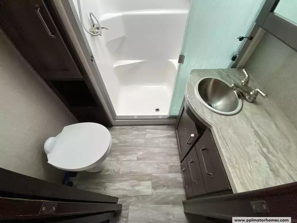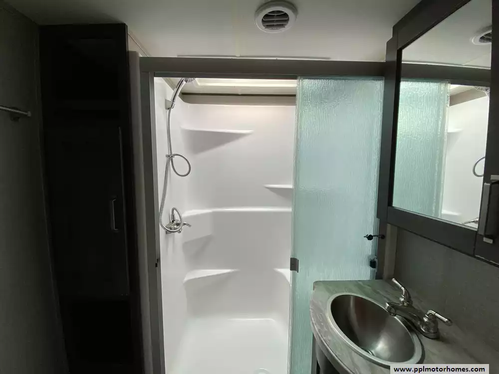 (Floor plan is NOT drawn to scale. Length of vehicle is approximate. Buyer is responsible for verifying actual length. PPL Motor Homes compiled this list of features, specifications, equipment and options as a guide. No representation or warranties, either express or implied, are made as to the accuracy of the information herein. Please verify for yourself all items listed before purchase.)