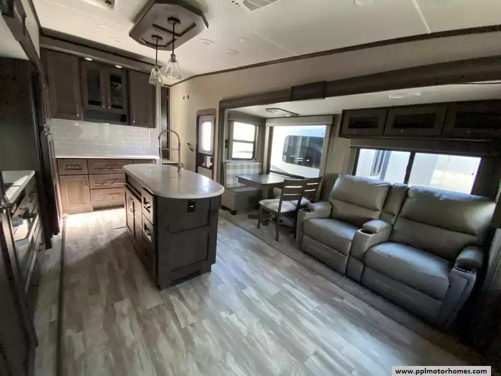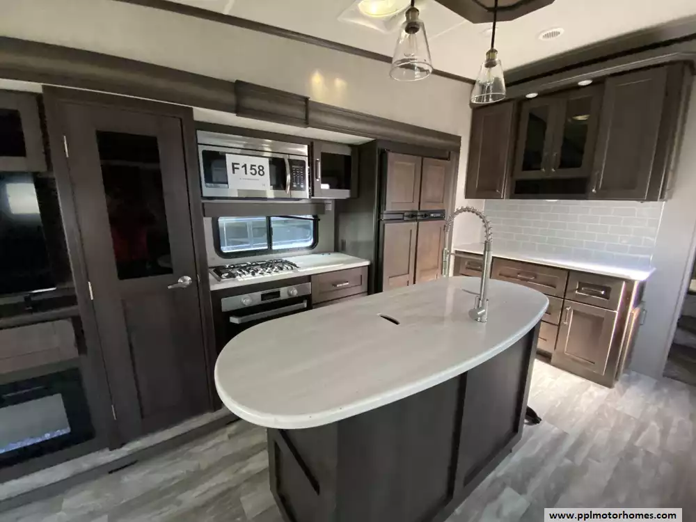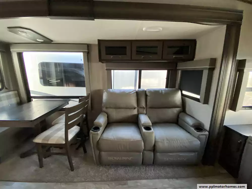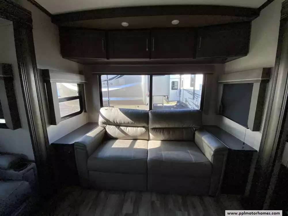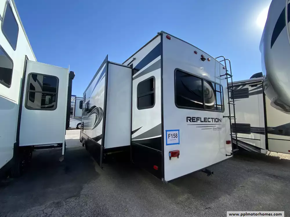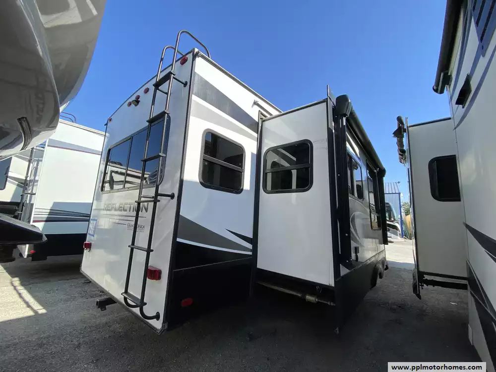 This 2020 Reflection 337RLS has an Electric Landing Gear, 3 Slide-outs, 2 Ducted Air Conditioners, 4 Door Gas/110v Norcold Refrigerator, 2 Automatic Main Awning, Washer/Dryer Connections, Heated Tanks, Outside Speakers, 2 TVs, DVD Player, Outside Shower, Fireplace, Convection Microwave, 3 Burner Range, Oven