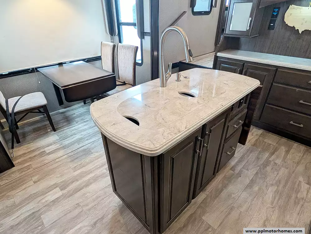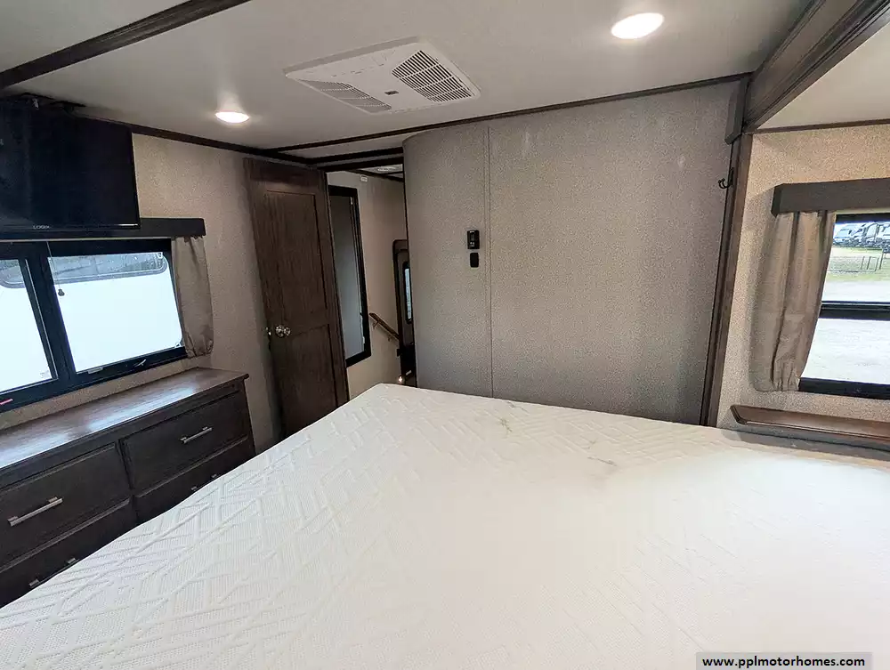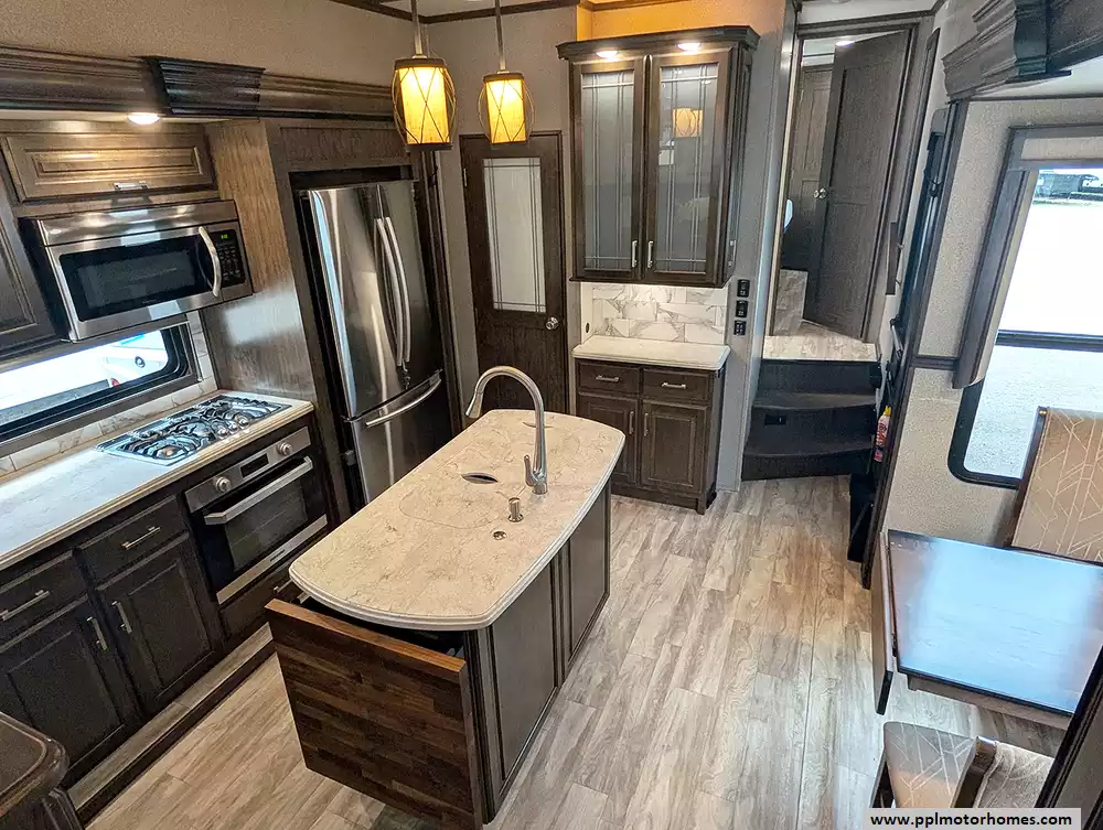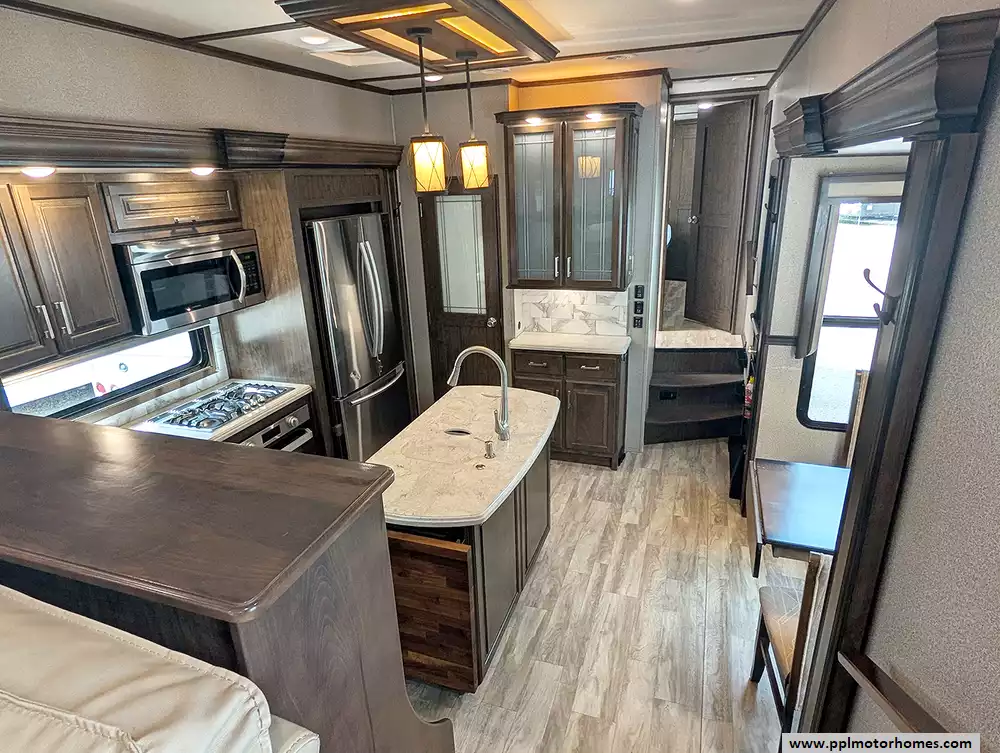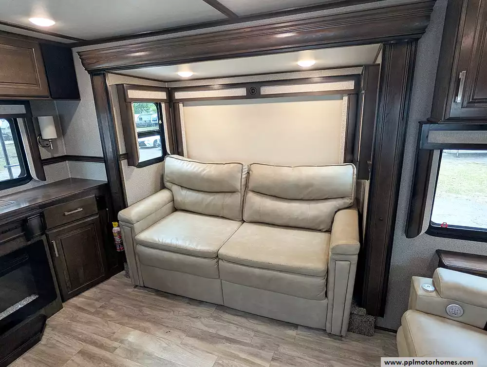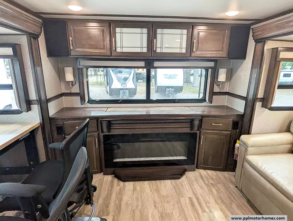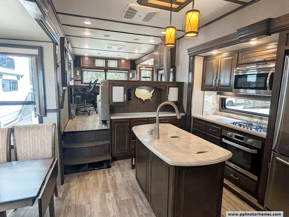 This 2020 Grand Design Solitude 375RES-R is a premier 41-foot fifth wheel engineered for those who demand residential-level luxury and superior all-weather performance. Renowned for its 101-inch wide-body construction and industry-leading insulation, this flagship model features a high-gloss fiberglass exterior and a durable rubber roof designed for long-term durability. The expansive interior layout is anchored by five massive slide-outs that create a truly open and airy environment, while the hydraulic landing gear makes campsite setup quick and effortless. You will enjoy maximum outdoor comfort with the automatic main awning and dedicated window and slide awnings providing premium shade in any environment.