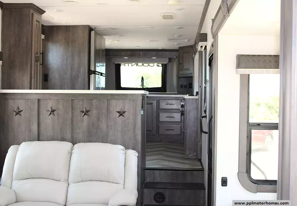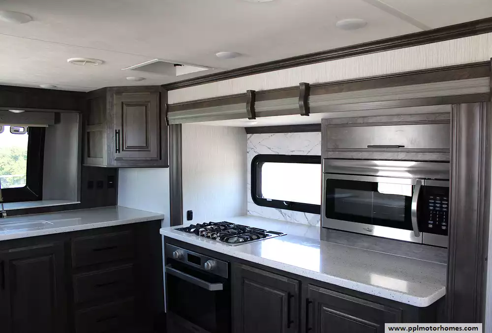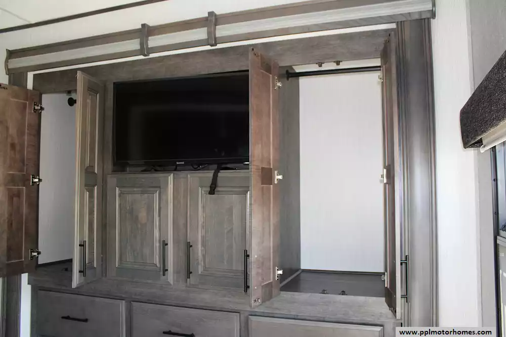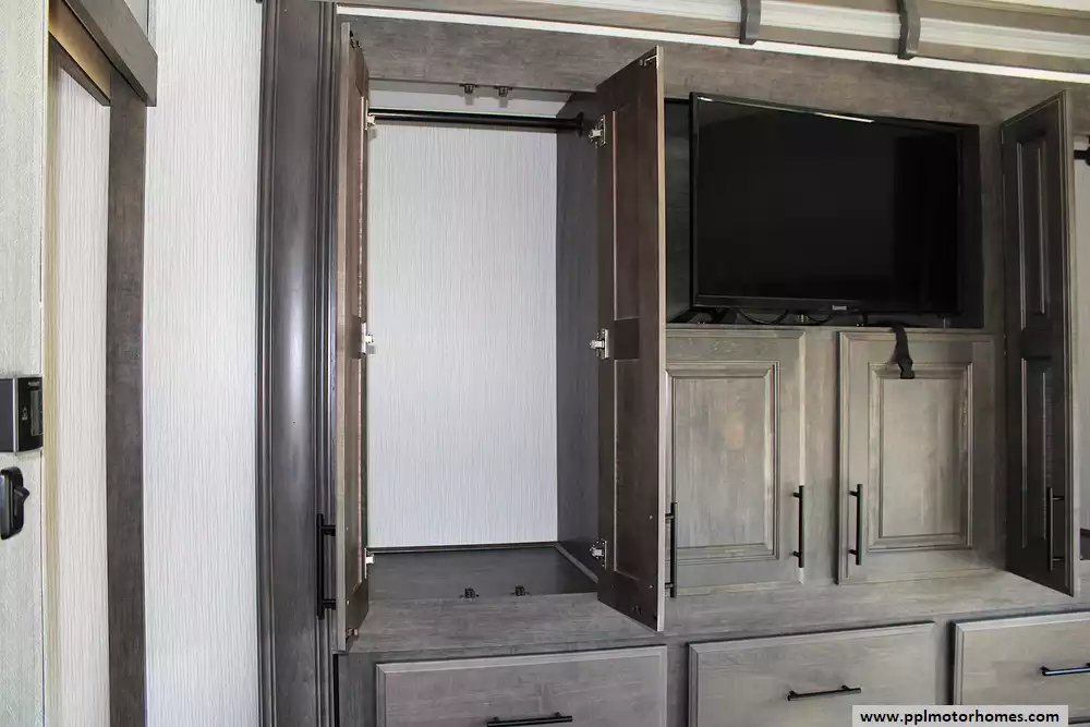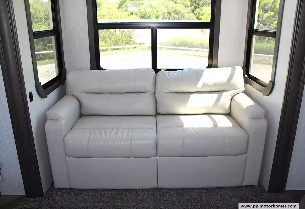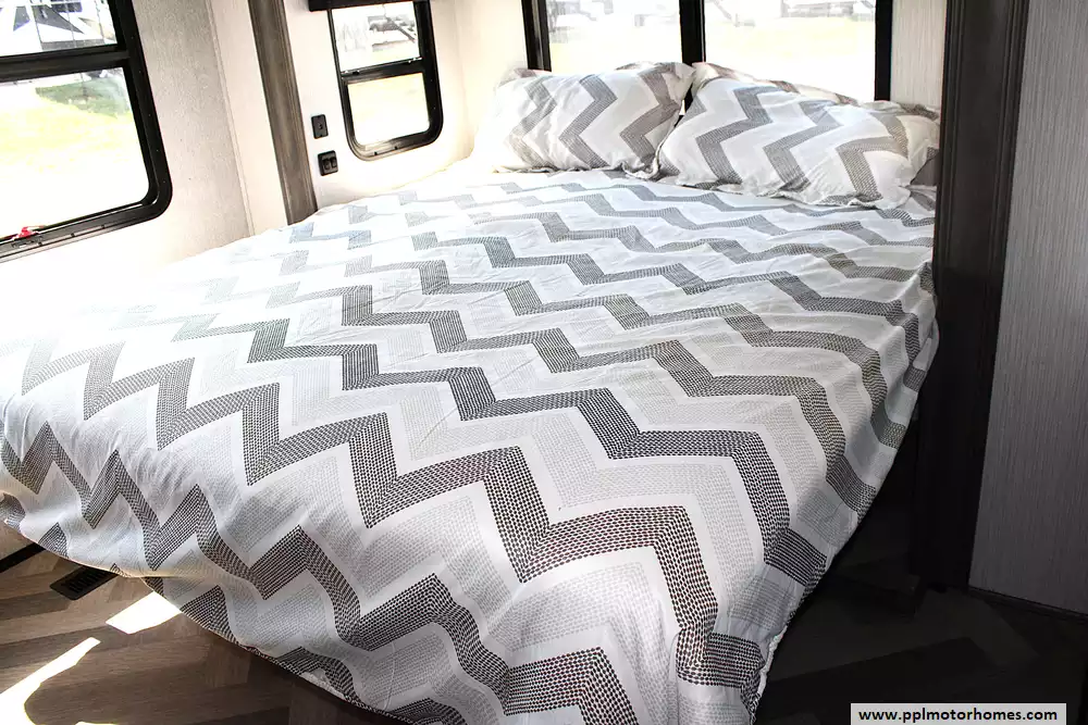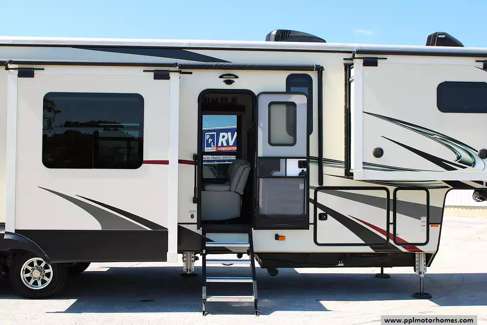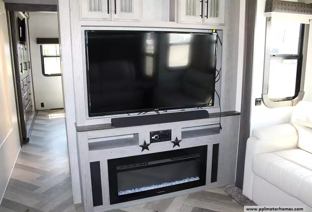 This unit is loaded with premium upgrades that elevate both comfort and functionality. Travel confidently with a complete Furrion camera system including rear, side, and entry-door cameras for superior visibility when maneuvering. Towing is smoother thanks to the Flex Air air-bag hitch, while MORryde slide-out awning toppers help protect your slide rooms from debris and weather. Storage is equally impressive with cargo bay slider trays, making it easy to access gear without crawling into compartments. When it's time to relax, the bedroom features a Sleep Number California King mattress, delivering adjustable comfort that rivals home.