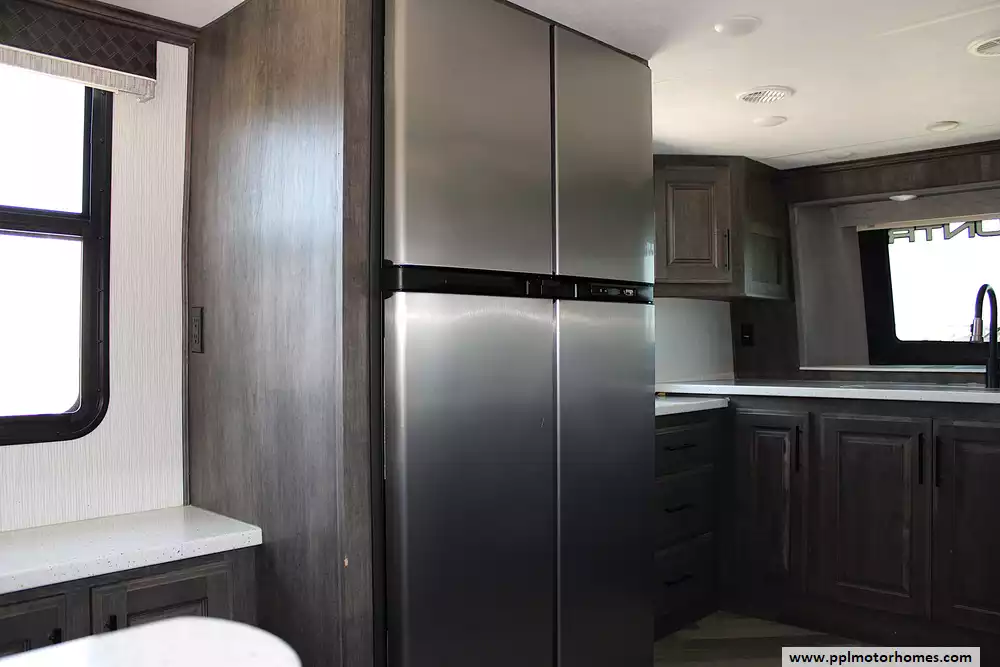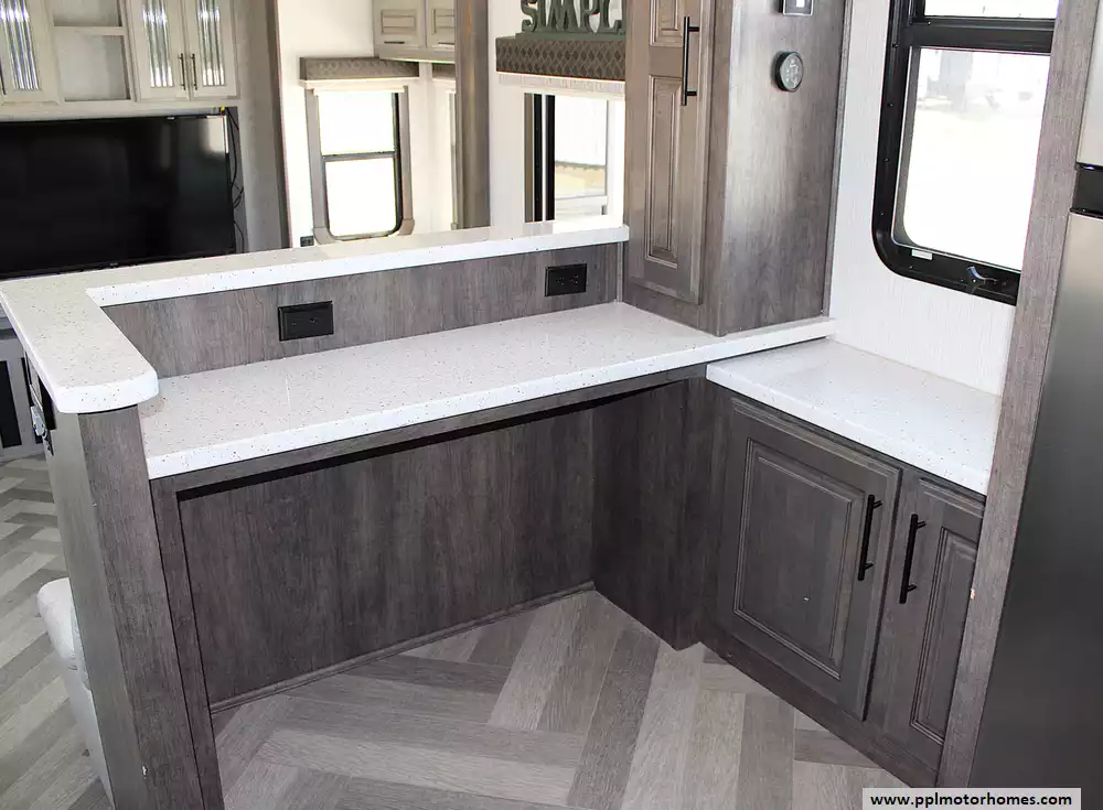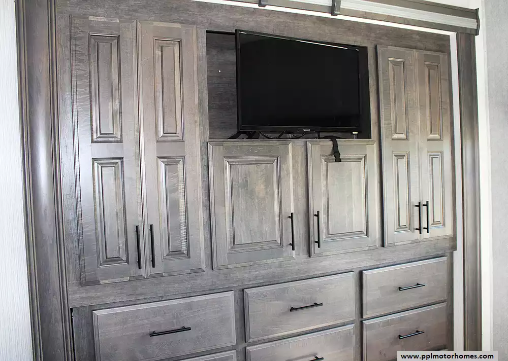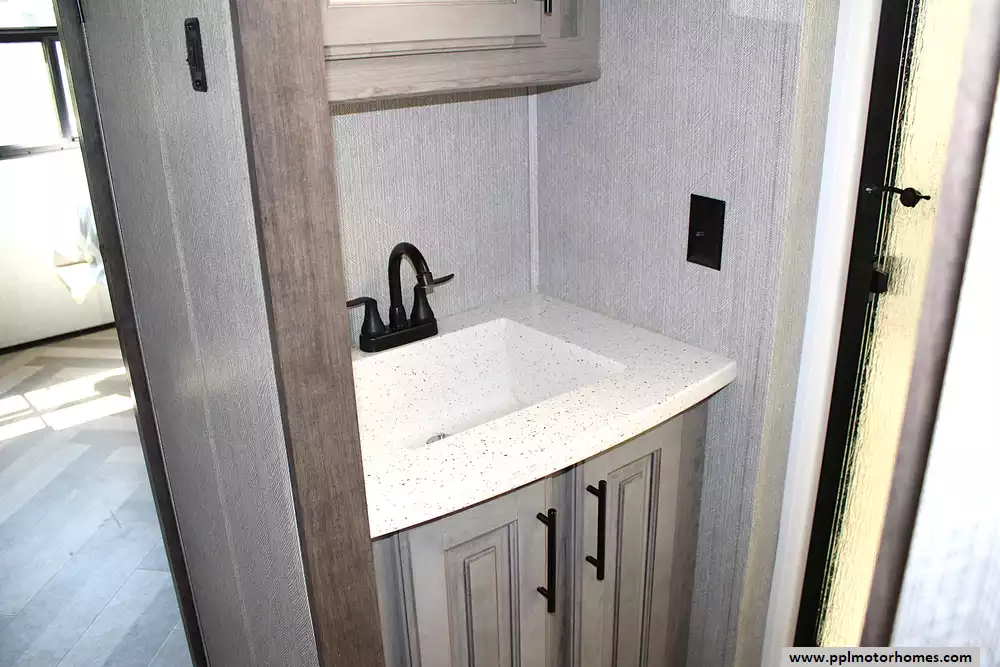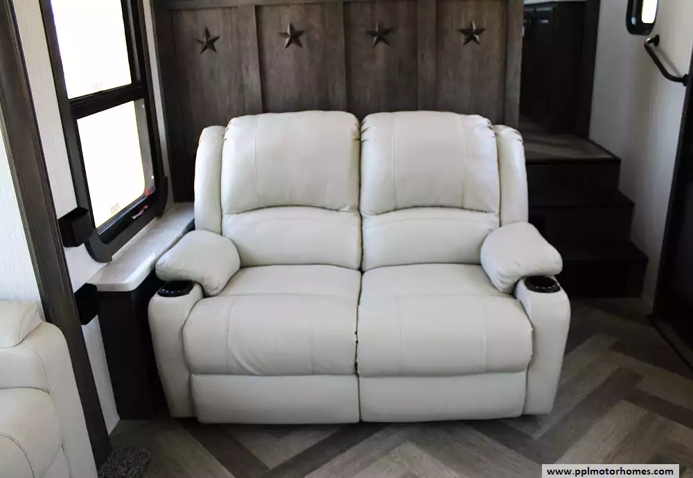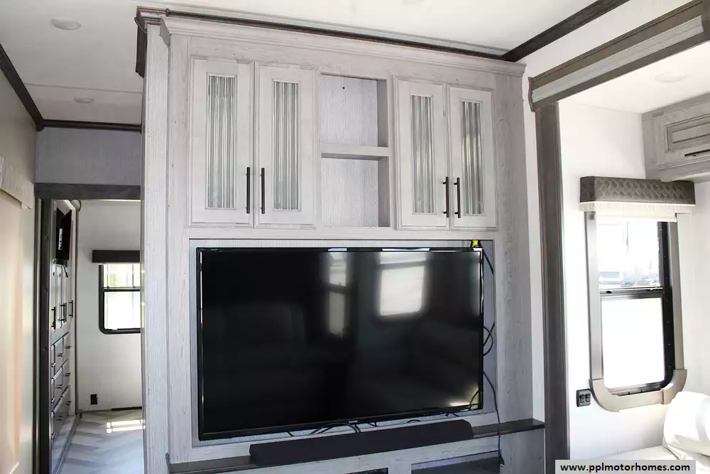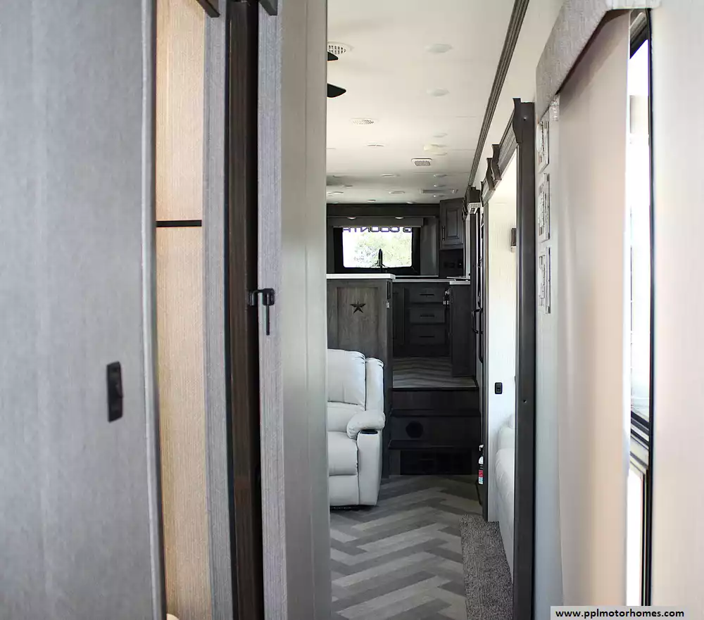 This unit is loaded with premium upgrades that elevate both comfort and functionality. Travel confidently with a complete Furrion camera system including rear, side, and entry-door cameras for superior visibility when maneuvering. Towing is smoother thanks to the Flex Air air-bag hitch, while MORryde slide-out awning toppers help protect your slide rooms from debris and weather. Storage is equally impressive with cargo bay slider trays, making it easy to access gear without crawling into compartments. When it's time to relax, the bedroom features a Sleep Number California King mattress, delivering adjustable comfort that rivals home.