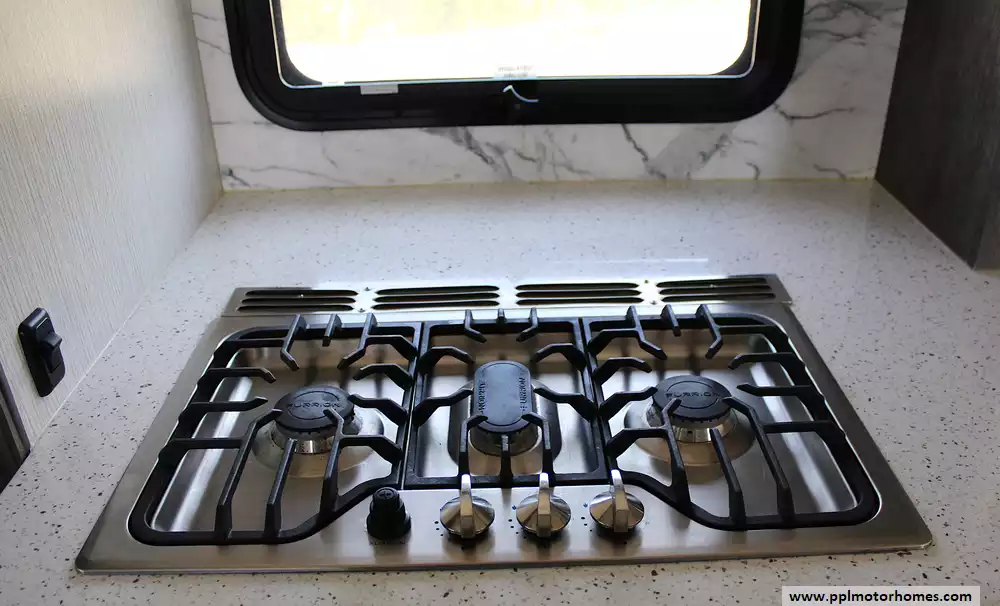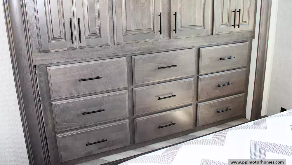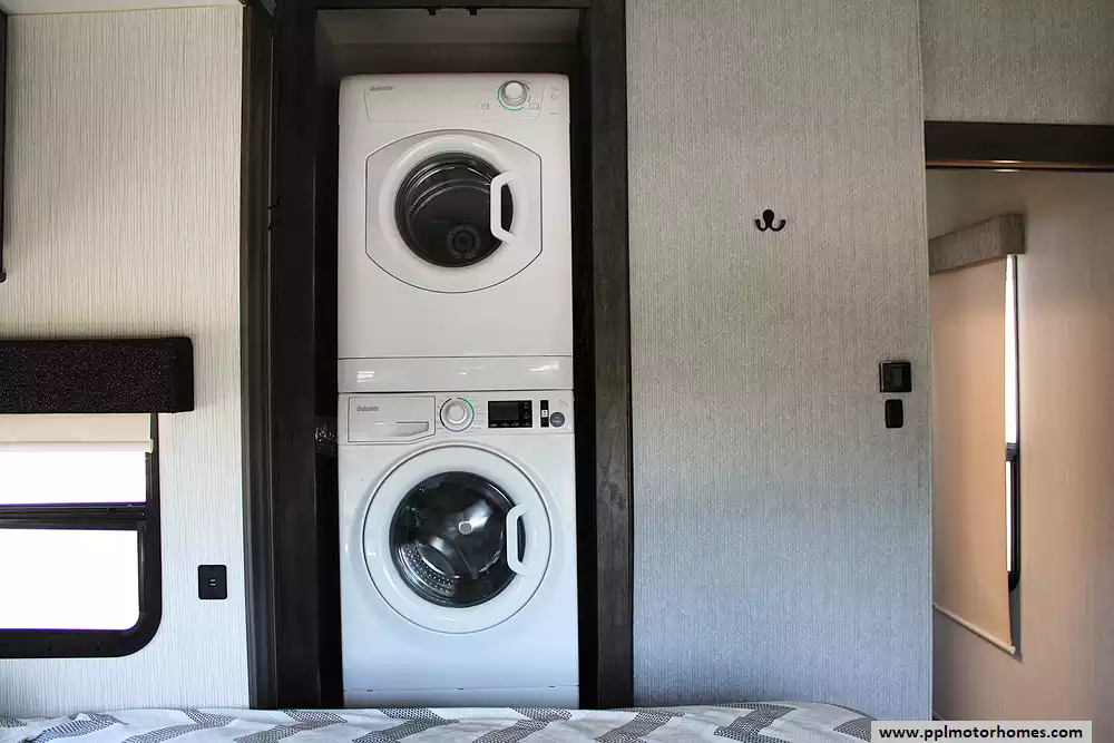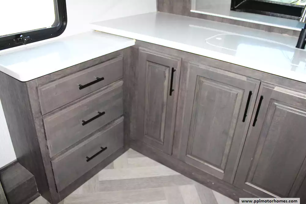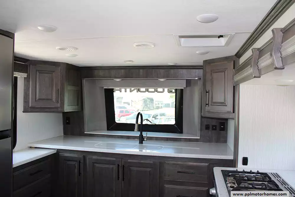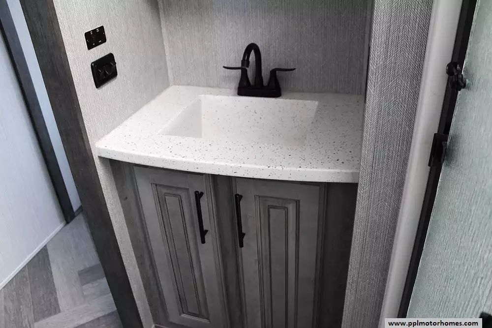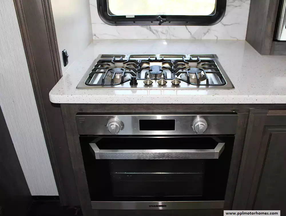This unit is loaded with premium upgrades that elevate both comfort and functionality. Travel confidently with a complete Furrion camera system including rear, side, and entry-door cameras for superior visibility when maneuvering. Towing is smoother thanks to the Flex Air air-bag hitch, while MORryde slide-out awning toppers help protect your slide rooms from debris and weather. Storage is equally impressive with cargo bay slider trays, making it easy to access gear without crawling into compartments. When it's time to relax, the bedroom features a Sleep Number California King mattress, delivering adjustable comfort that rivals home.