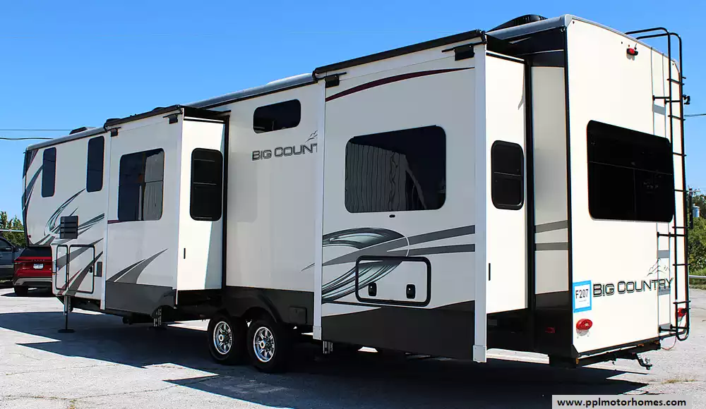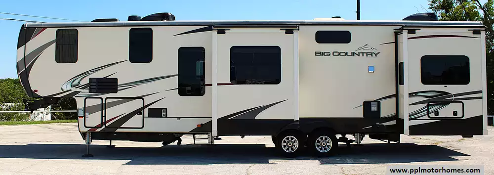 Entertainment and durability round out this incredible package. A portable TV King Dome satellite system with Dish Network receivers and DVR keeps you connected to your favorite shows no matter where you camp, while the Rhino liner roof coating adds an extra layer of protection and longevity to the roof. With a GVWR approaching 16,500 pounds and the size of this luxury fifth wheel, it is best to tow with a properly equipped heavy-duty pickup truck with a fifth-wheel hitch, ideally in the one-ton class for safe and confident towing. If you're looking for a spacious, feature-packed luxury RV that blends residential comfort with road-ready upgrades, this Big Country is ready to deliver unforgettable adventures.