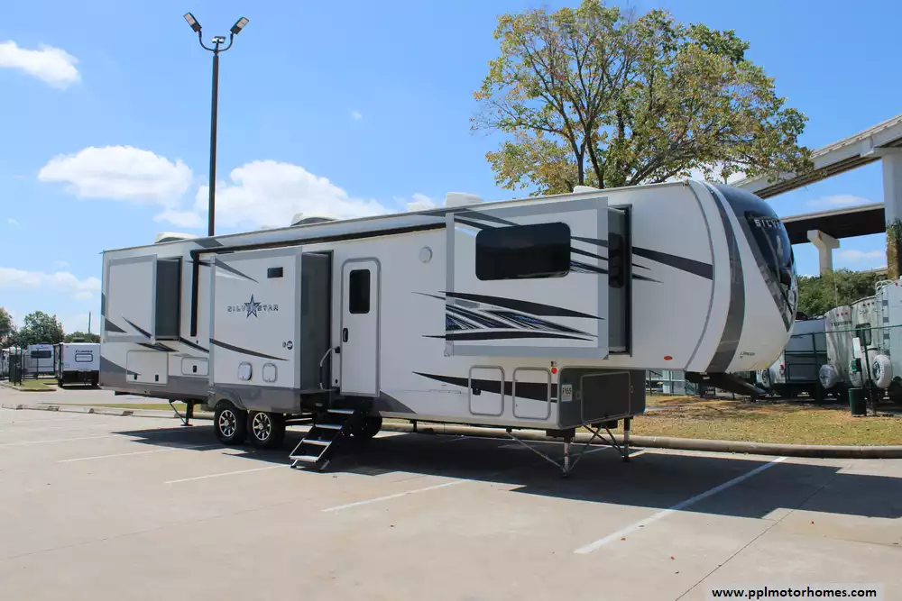 Go Out and Explore,Enjoy Every Moment In This 2020 Silverstar 376FBH.Features Include...Has a 5 Slide-outs, 2 Ducted Air Conditioners, Double Door Side by Side Residential Refrigerator, In-Fridge Ice Maker, Automatic Main Awning, Washer/Dryer, 2 TVs, Outdoor Grill, Fireplace, Microwave, 4 Burner Range,and Oven.Provides More Than Enough Space and Comfort to Watch the Game With Friends and Family!Constructed for Full Time Living!