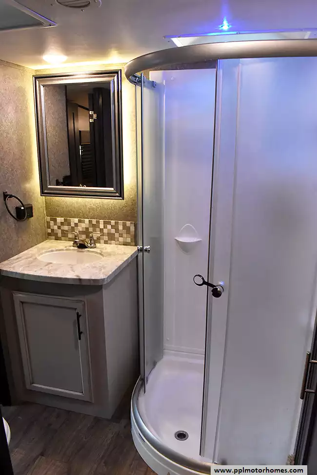 (Floor plan is NOT drawn to scale. Length of vehicle is approximate. Buyer is responsible for verifying actual length. PPL Motor Homes compiled this list of features, specifications, equipment and options as a guide. No representation or warranties, either express or implied, are made as to the accuracy of the information herein. Please verify for yourself all items listed before purchase.)