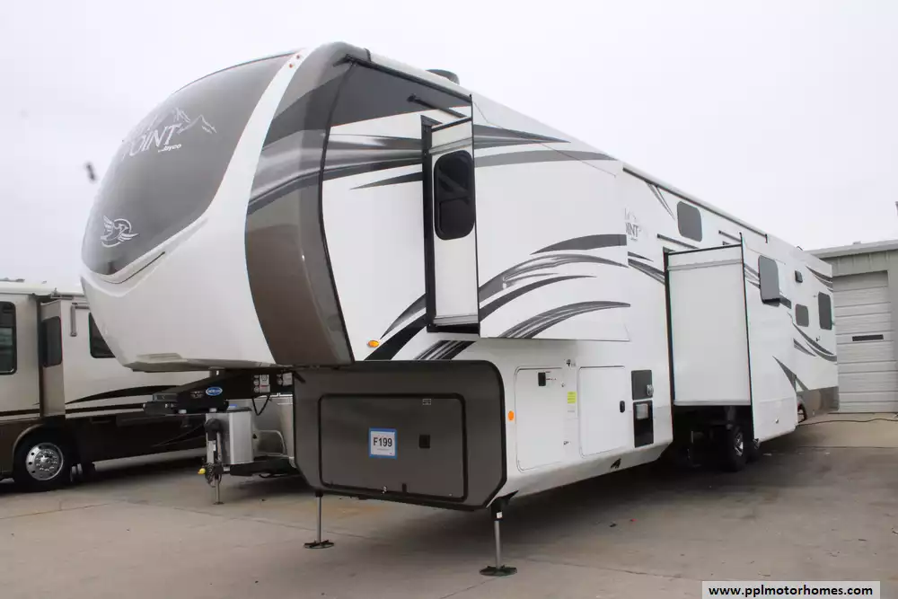 This 2020 Jayco North Point 377RLBH Is Searching For New Adventures! Highlights Of This Mid-Bunk Model Include.... A 6-Point One-Touch Hydraulic Leveling System, 4 Slide-Outs, MORryde "Step Above" Entry Steps, MORryde CRE-3000 Suspension System, Dexter Axles, Rooftop Solar Prep, 2 Roof-Ducted Air Conditioners, 1,200-Watt Inverter, Double Door 110v Residential Whirlpool Refrigerator With In-Fridge Ice Maker, Main Power Awning And Window/Door Awnings, Washer/Dryer Connections, Outside Speakers, "BMPro" Touchscreen Control Panel, Rear Camera (Monitor Included), Winegard Air 360 Antenna, Winegard Gateway 4G/LTE Wifi, 3 TVs, 2 DVD Players, Outdoor Kitchen (Outdoor Refrigerator And Griddle), Outside Shower, Maxxair Vent Covers, Fireplace, Central Vacuum System, Charging Station, Kitchen Island, Convection Microwave, 3 Burner Range, Oven, Master King Bed With CPAP Prep, And More!! Feel Right At Home In This Adventurous 2020 Jayco North Point Mid-Bunk! Ask About PPL's Financing Options And How This North Point is Eligble For Protection.