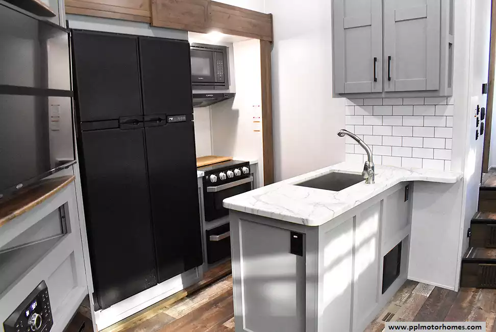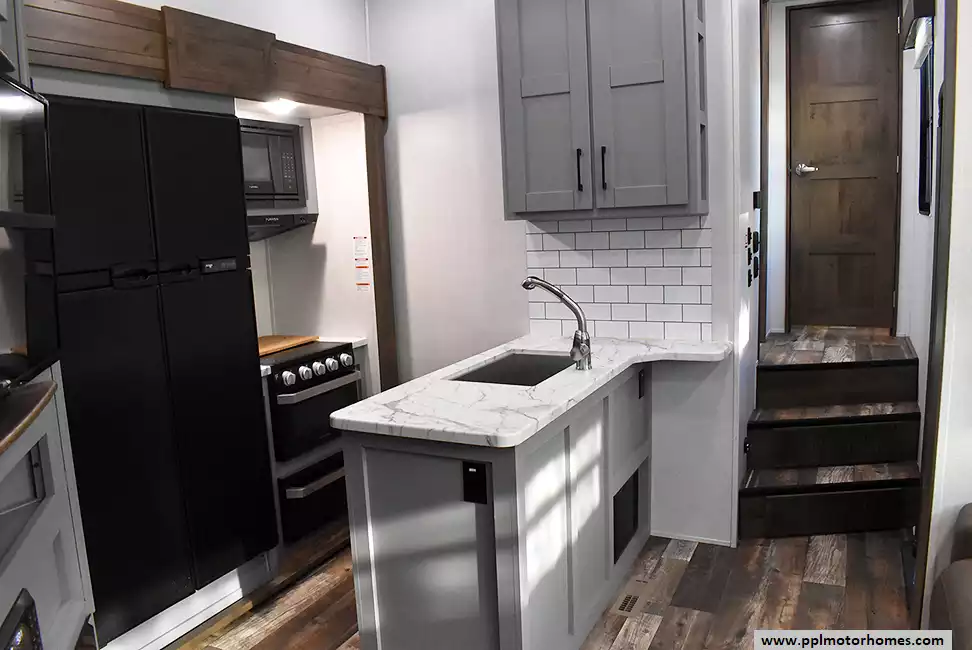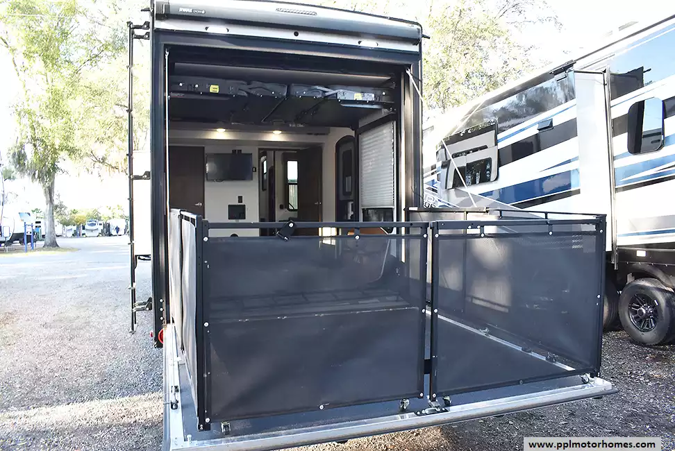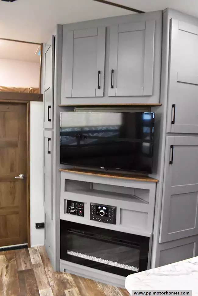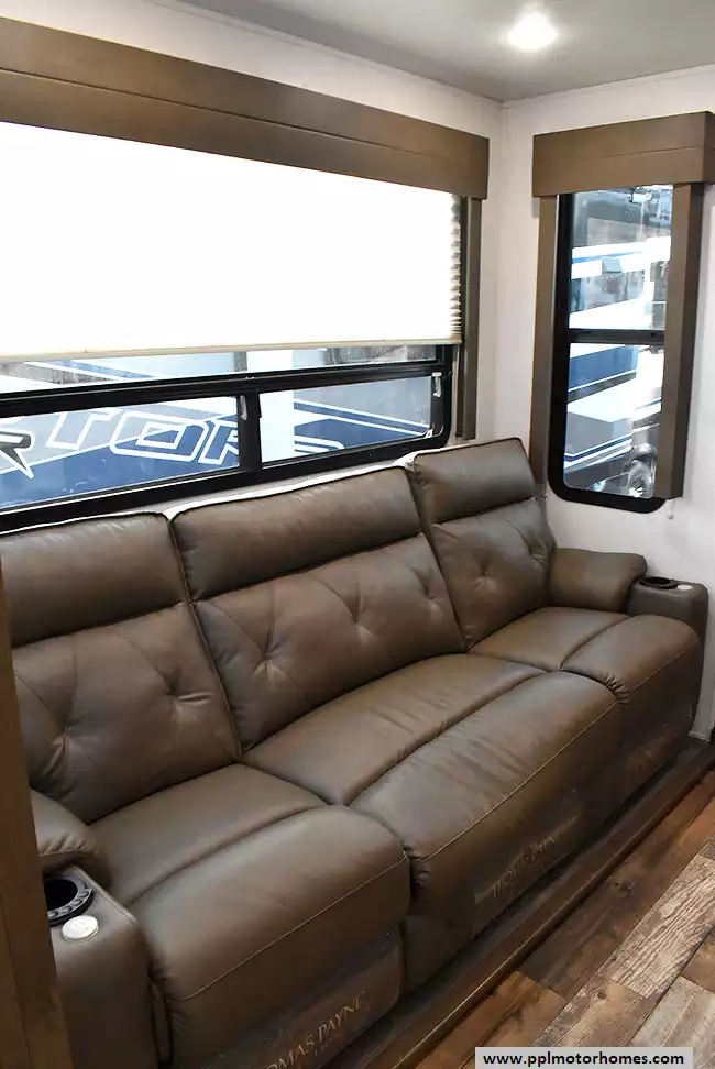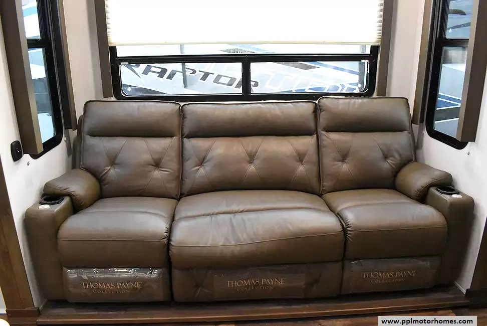 This 2020 Fuzion Impact 367 has a Hydraulic Landing Gear, 3 Slide-outs, Onan Gas Generator, 2 Ducted Air Conditioners, 4 Door Gas/12v Norcold Refrigerator, Automatic Main Awning, Washer/Dryer Connections, Outside Speakers, 2 TVs, DVD Player, Outside Shower, Fireplace, Microwave, 3 Burner Range, Oven
