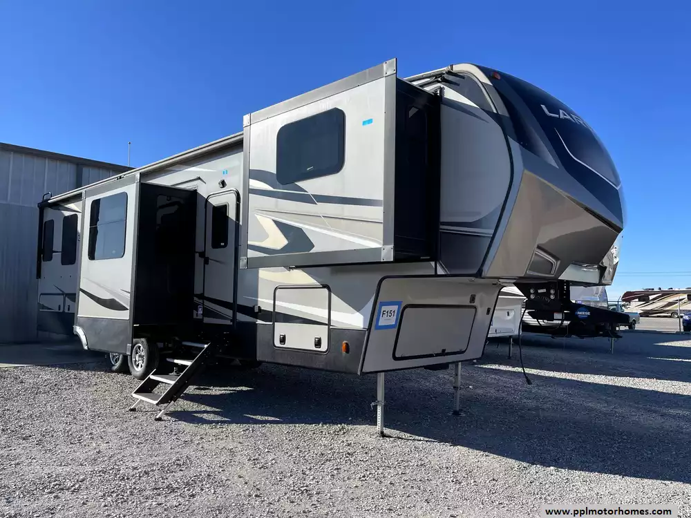 This 2020 Laredo by Keystone 353FL has an Electric Landing Gear, 4 Slide-outs, 2 Ducted Air Conditioners, 4 Door Side by Side Gas/110v Norcold Refrigerator, Automatic Main Awning, Washer/Dryer Connections, Outside Speakers, 2 TVs, Outside Shower, Fireplace, Microwave, 3 Burner Range, Oven