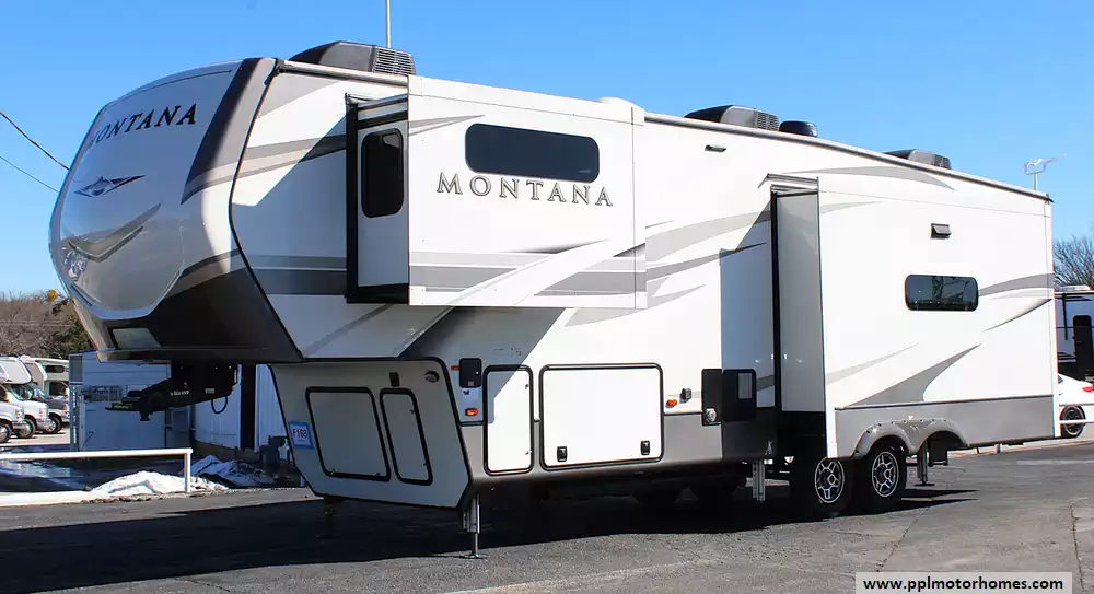 2020 Keystone Montana 3121RL is a premium rear-living fifth wheel built for comfort, reliability, and extended stays. This unit has been exceptionally well cared for and thoughtfully upgraded, including a new roof installed one year ago, both original A/C units replaced, and the addition of a third A/C that is Bluetooth-controlled from your phone. With dual awnings, residential finishes, and a spacious living area, it delivers the high-end Montana experience with modern enhancements already done.