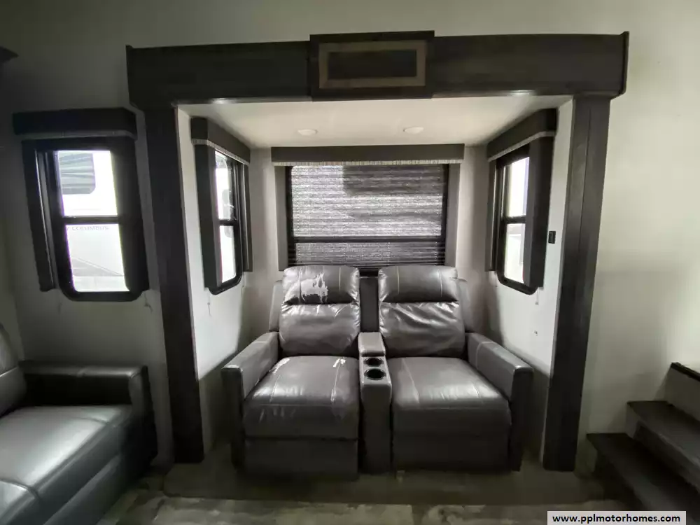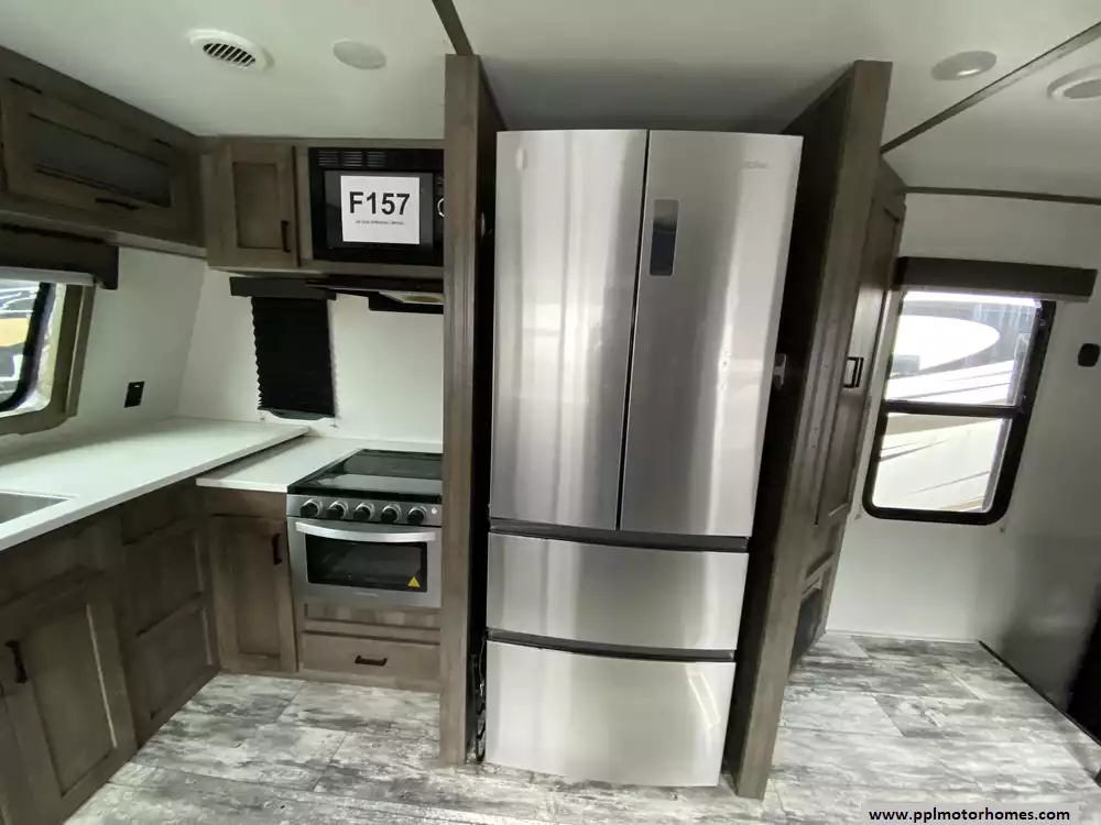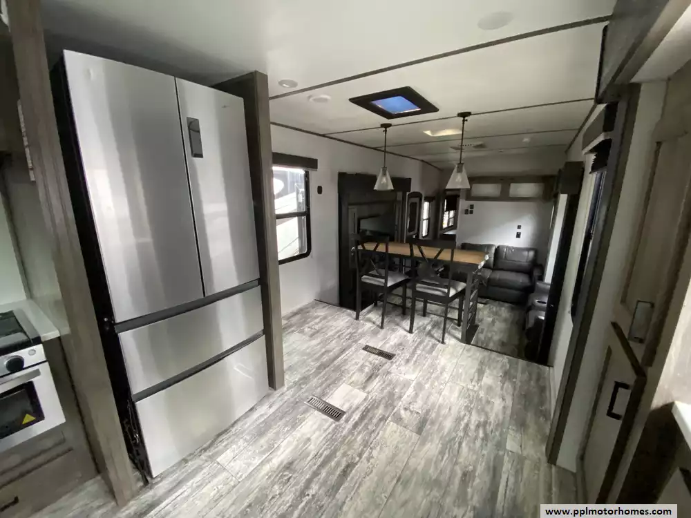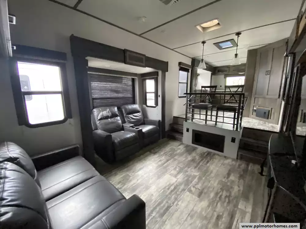 Experience the pinnacle of spacious living with the 2020 Sprinter Limited 3611FWFKS, a premium 40-foot fifth wheel celebrated for its innovative 100-inch wide-body construction. This unique front-kitchen floor plan maximizes every inch of interior space, offering a true residential feel enhanced by four massive slide-outs and a cozy interior fireplace. The chef-inspired kitchen area is perfectly equipped with a three-burner range, microwave, and a large double-door 12v refrigerator, while the on-board washer and dryer and dual ducted air conditioners ensure you have all the comforts of home on the road. Designed with Keystones "Camping Made Easy" philosophy, this unit balances high-end luxury with effortless utility, including electric landing gear for quick and easy setup at any destination.