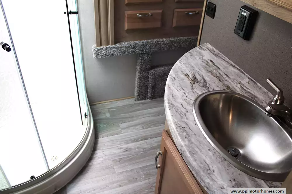 Weighing approximately 8,340 lbs dry with a GVWR of 9,995 lbs, this unit is towable by many well-equipped half-ton or larger pickup trucks with a fifth-wheel hitch. Built on a durable aluminum frame with fiberglass siding, it also includes a 15,000 BTU A/C, power awning with LED lighting, and a 10-gallon gas/electric water heater. Whether you're seeking weekend comfort or long-term travel convenience, this Minnie Plus 27RLTS delivers premium features and upgraded systems for the modern RVer.