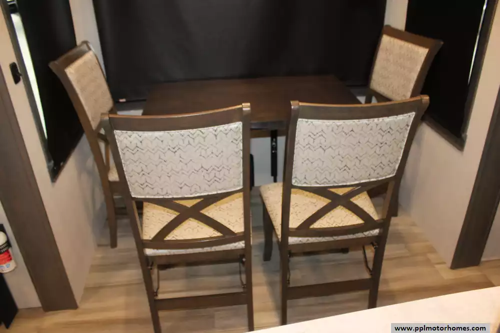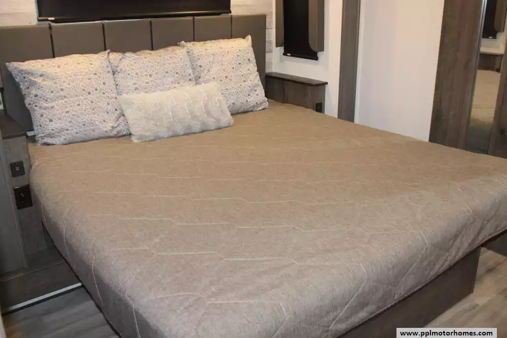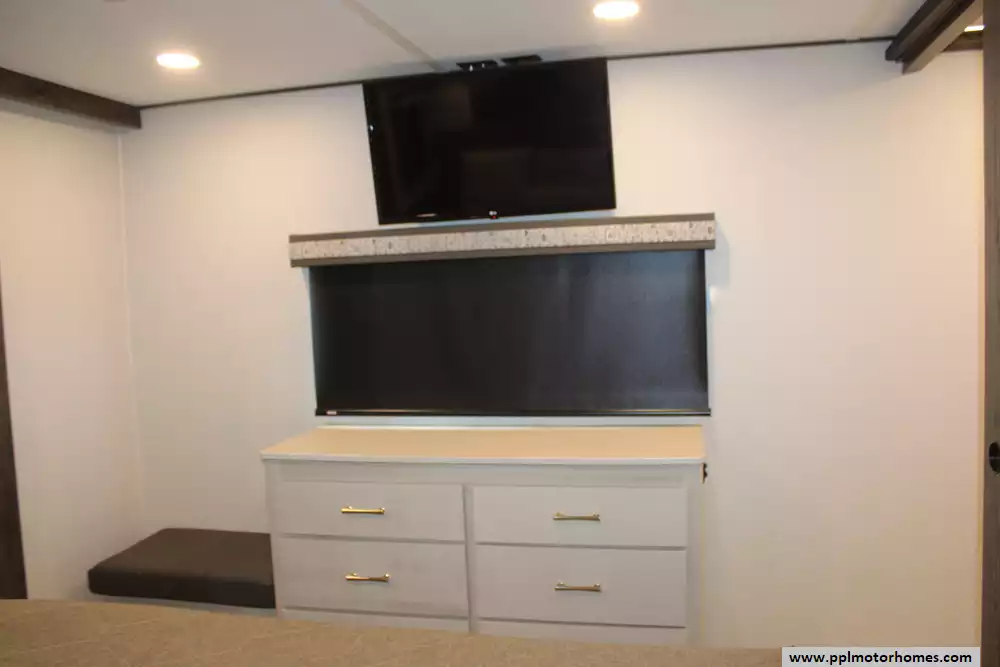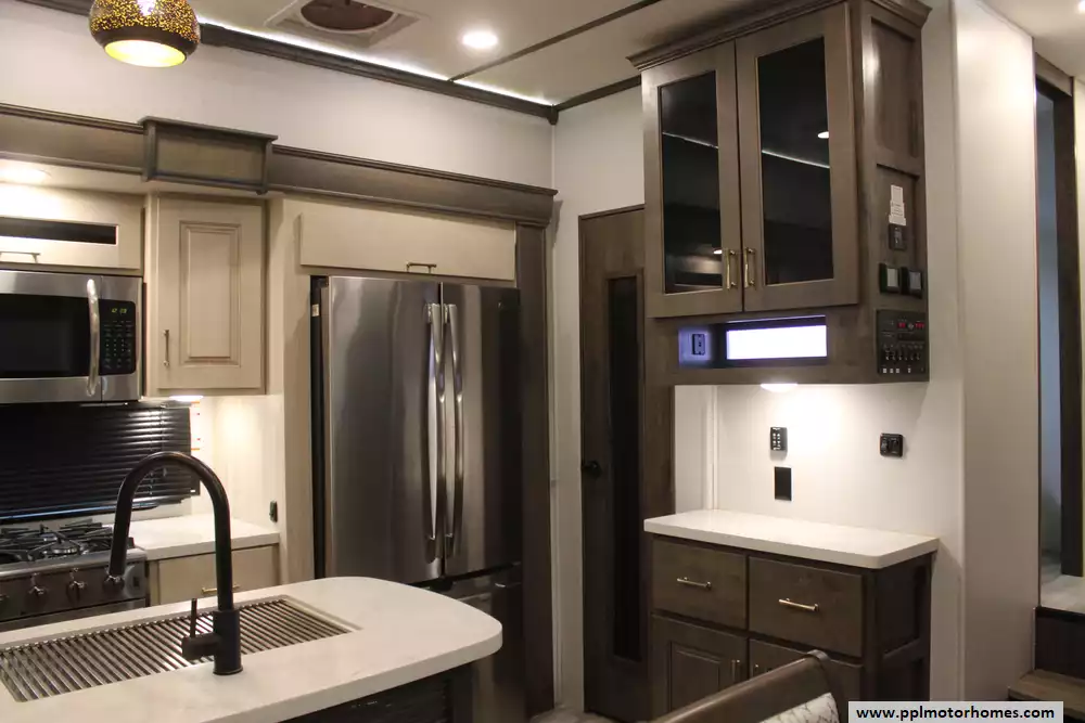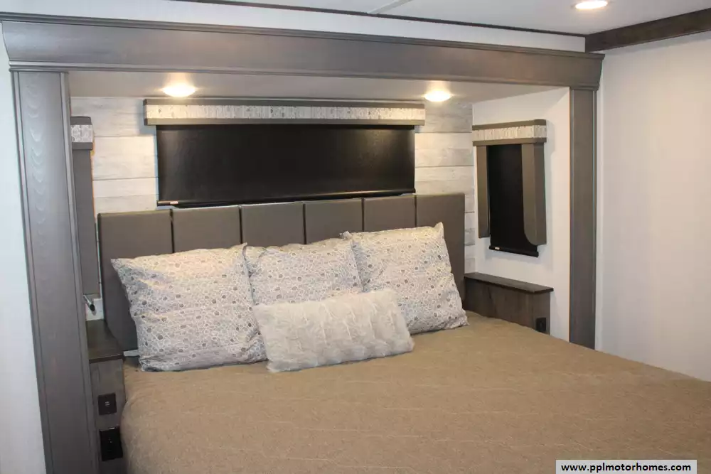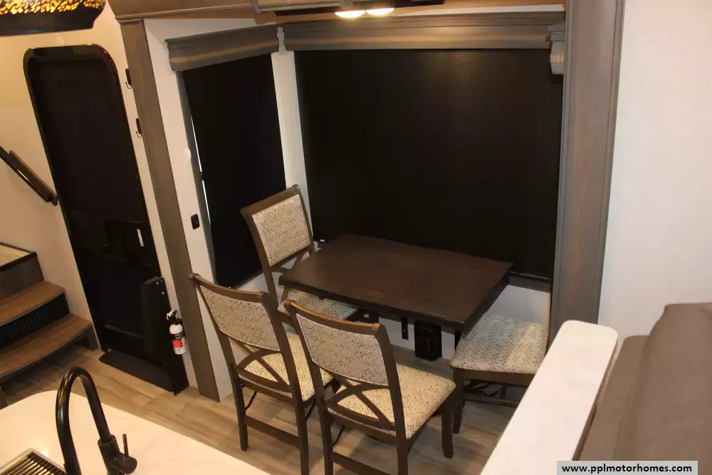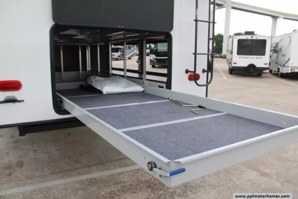 Experience the pinnacle of luxury with this 2021 Paradigm 365RD, a 39-foot fifth wheel designed for those who refuse to compromise on comfort. Renowned for its customer-driven design and spacious rear-den layout, this model features five slide-outs that transform the interior into a true residential retreat. The separate living area is perfect for entertaining, anchored by an inviting fireplace and a comprehensive entertainment setup that includes three TVs and an outside entertainment system for movie nights under the stars. Whether you are relaxing in the climate-controlled interior or enjoying the shade of the automatic main awning, this fiberglass-bodied coach offers an upscale atmosphere that feels like a high-end home on wheels.