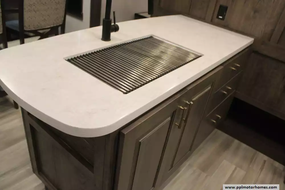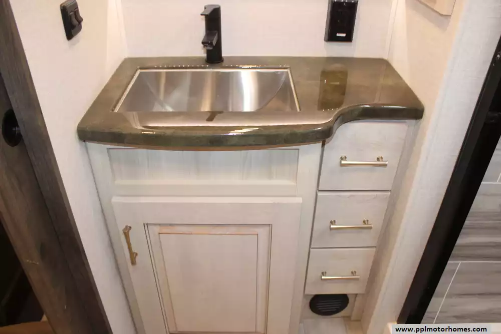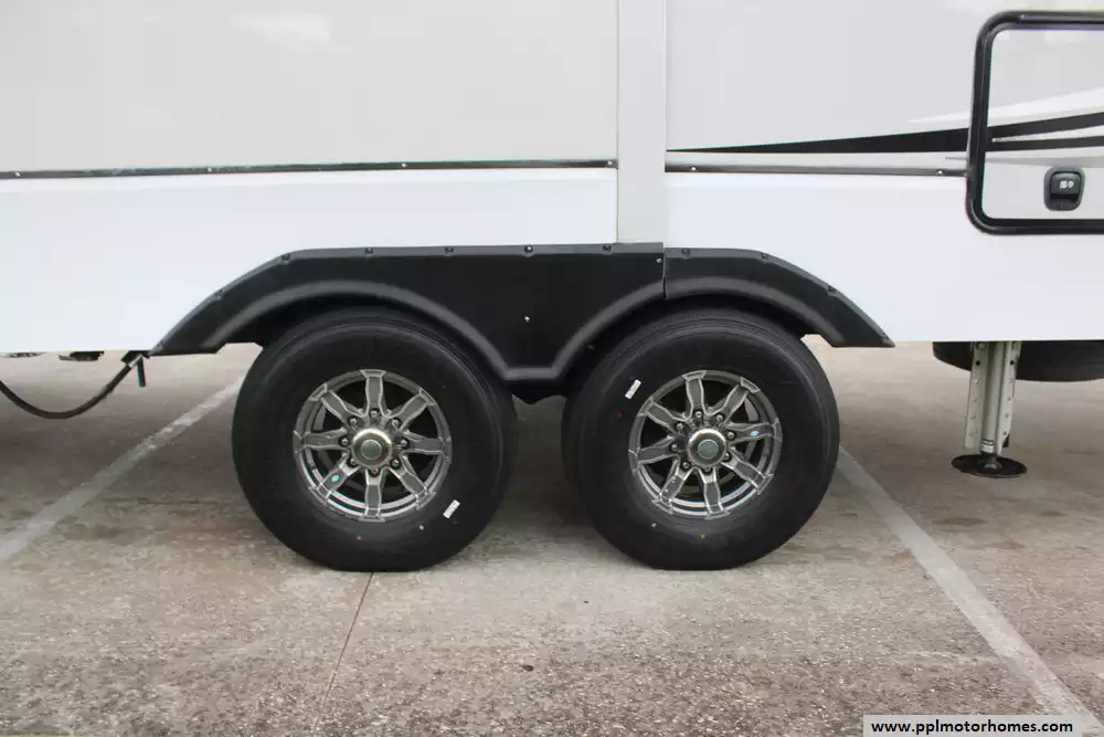 Specs: Length: 39.10 ft., Total Fresh Water Tank Capacity: 98 gal., Total Grey Tank Capacity: 106 gal., Total Black Water Tank Capacity: 53 gal.