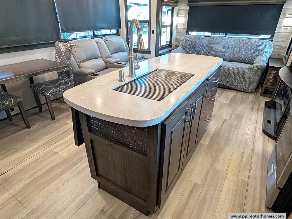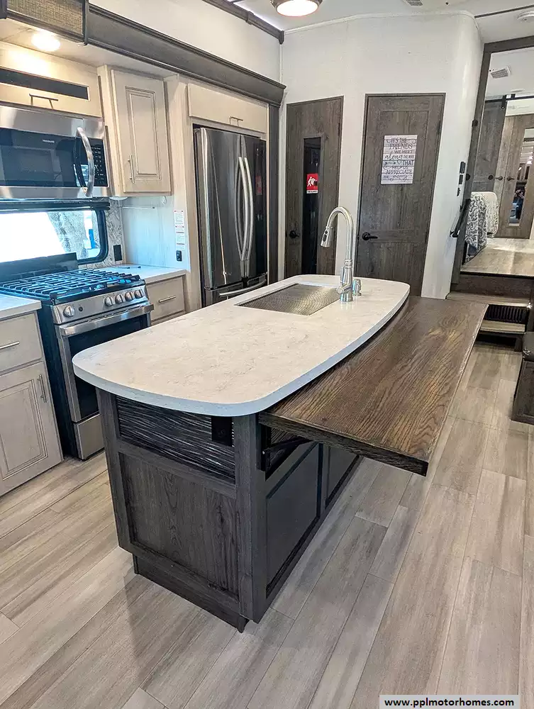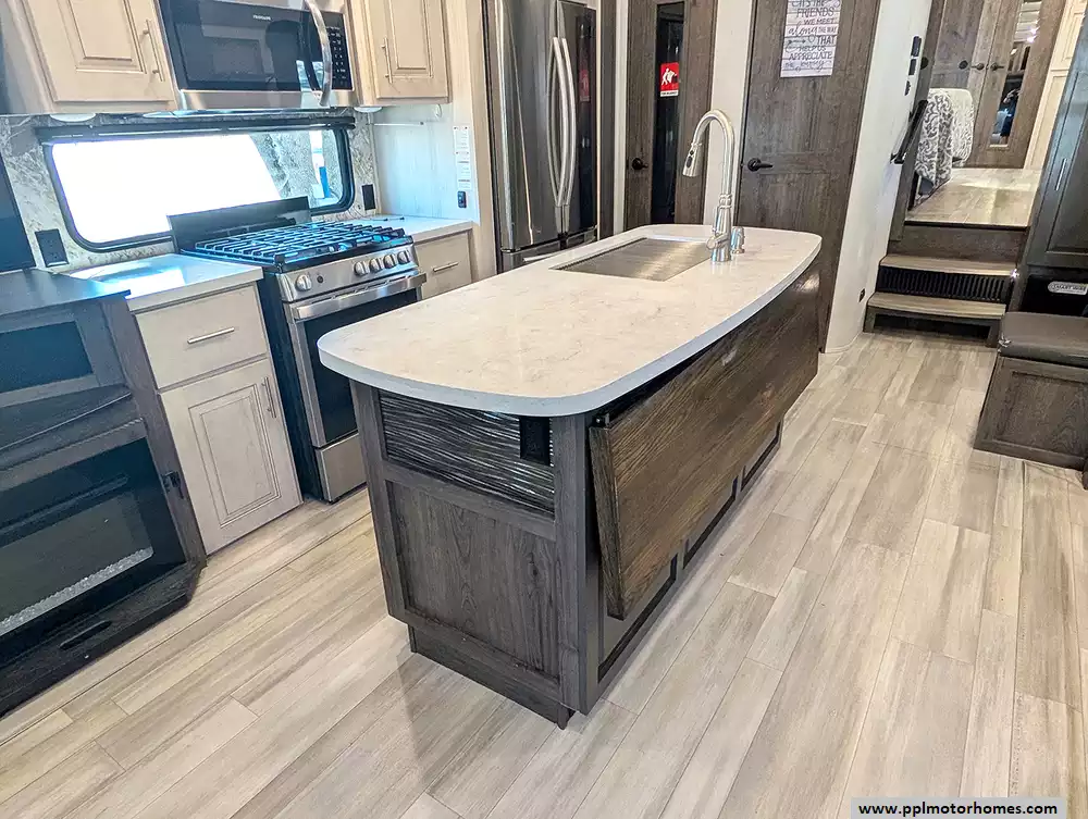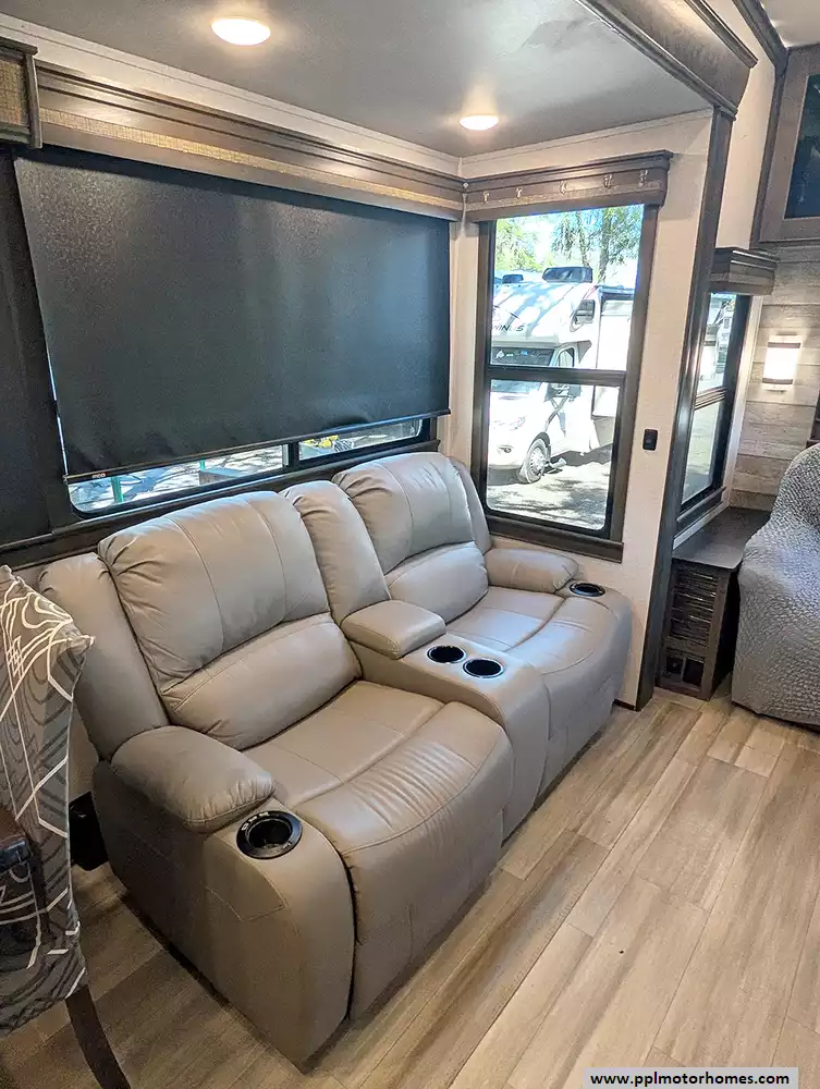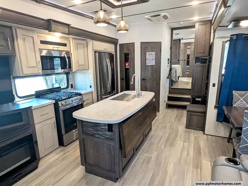 Experience the pinnacle of full-time luxury living with the 2021 Paradigm 370FB by Alliance RV. Renowned for its customer-driven design and 101-inch wide-body construction, this 40-foot fifth wheel offers an unparalleled sense of space and residential comfort. Built with a durable fiberglass body and a rubber roof, it features four expansive slide-outs that open up a sophisticated interior highlighted by a cozy fireplace and premium finishes. The heart of the home is a chef-inspired kitchen equipped with a four-burner range, oven, convection microwave, and a massive residential Samsung refrigerator with an in-fridge ice maker. Whether you are hosting guests in the spacious living area or enjoying the climate-controlled comfort provided by three ducted air conditioners, this Paradigm is engineered to provide a true home-away-from-home experience.