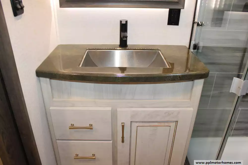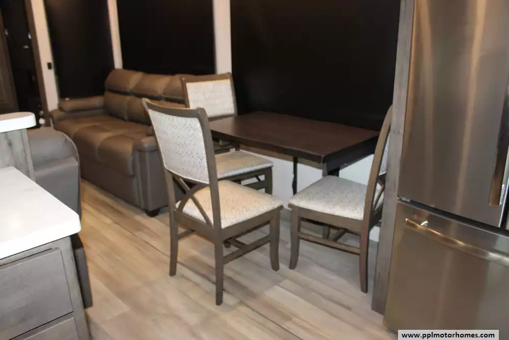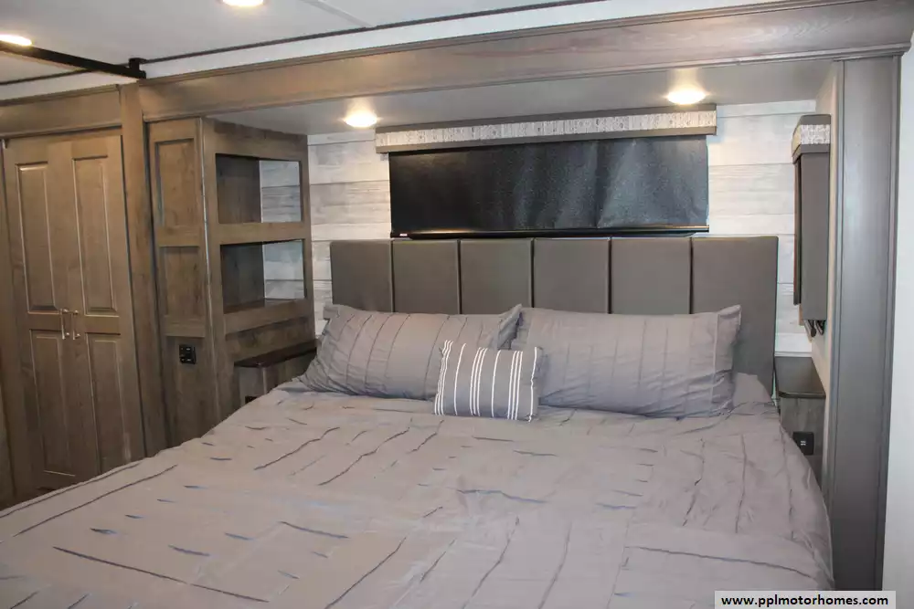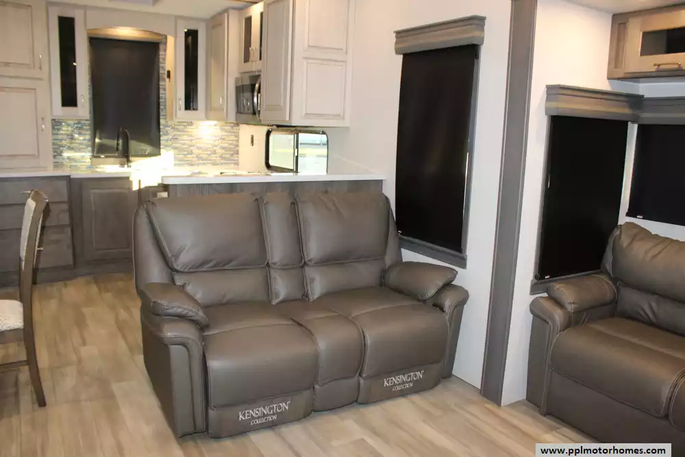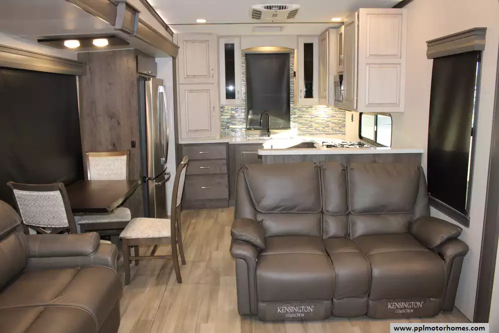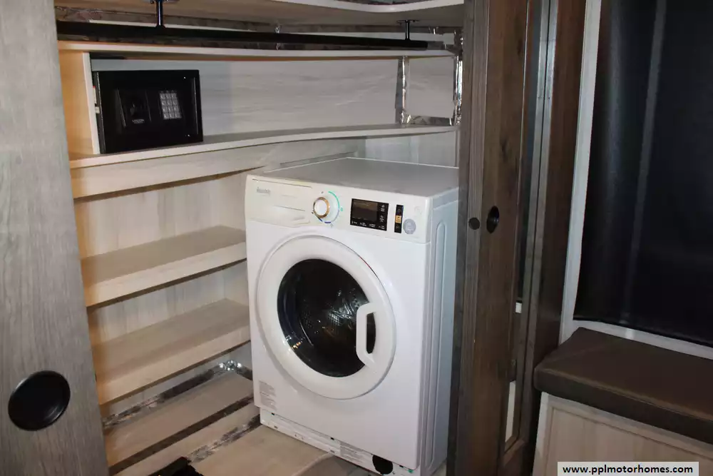 This 2021 Paradigm 372RK is a luxury, spacious premium fifth-wheel built for comfort, style, and longer stays. Amenities Include...3 Slide-outs, 2 Non-Ducted And 1 Ducted Air Conditioners, 110v Residential Ge Refrigerator, In-Fridge Ice Maker, Automatic Main Awning And Window Awning, Washer/Dryer, Outside Speakers, 2 TVs, Outside Shower, Microwave, and 3 Burner Range.