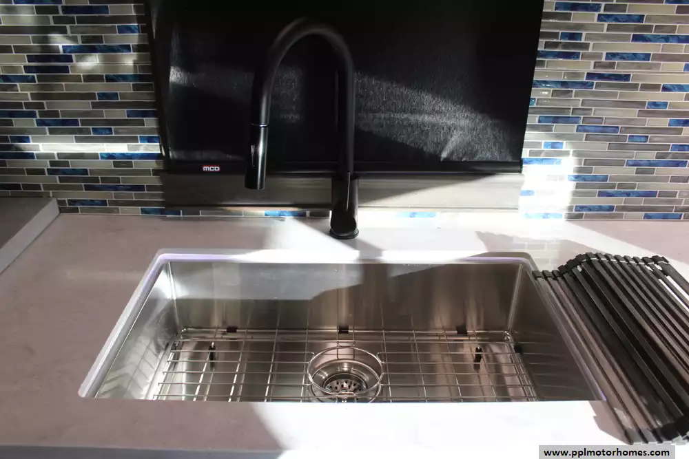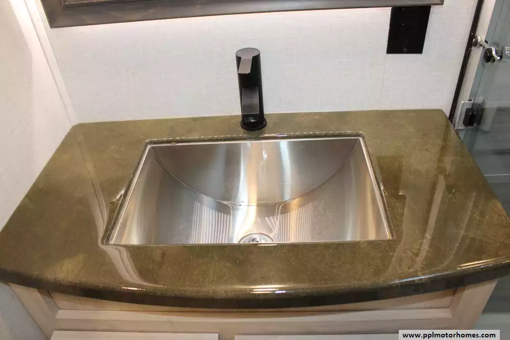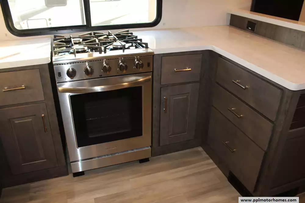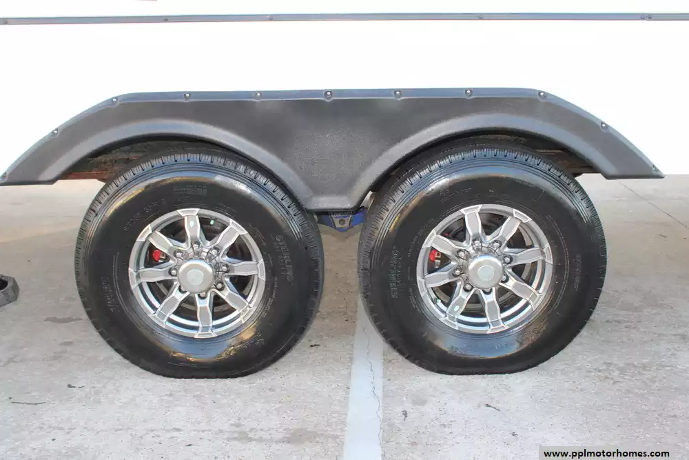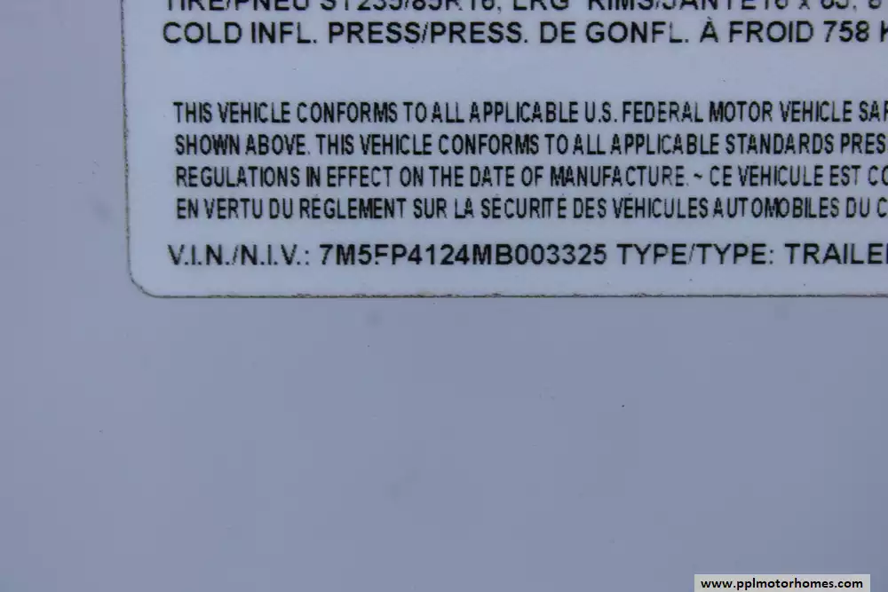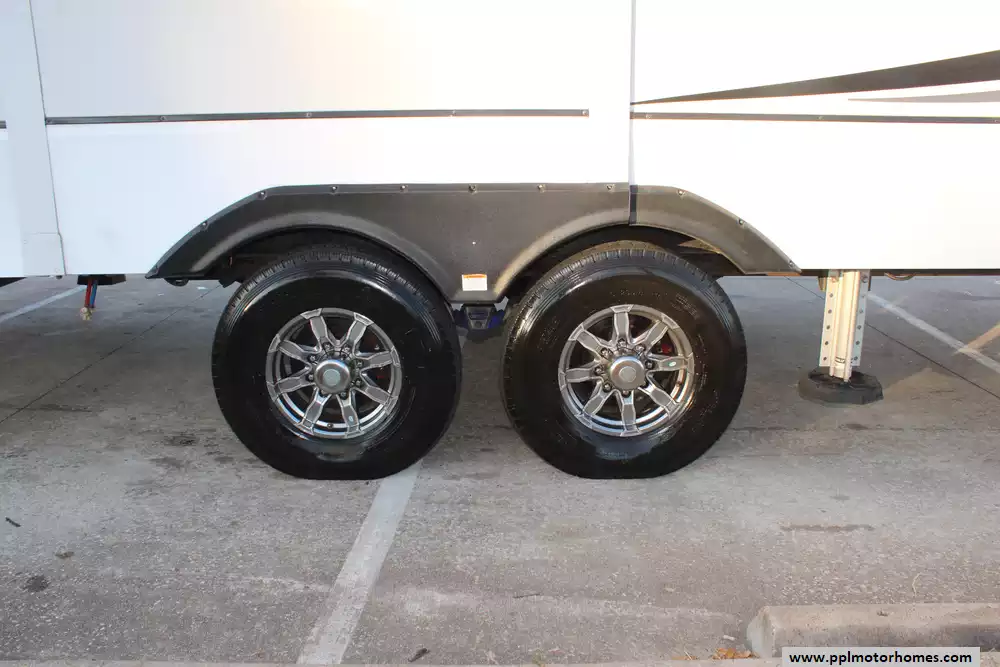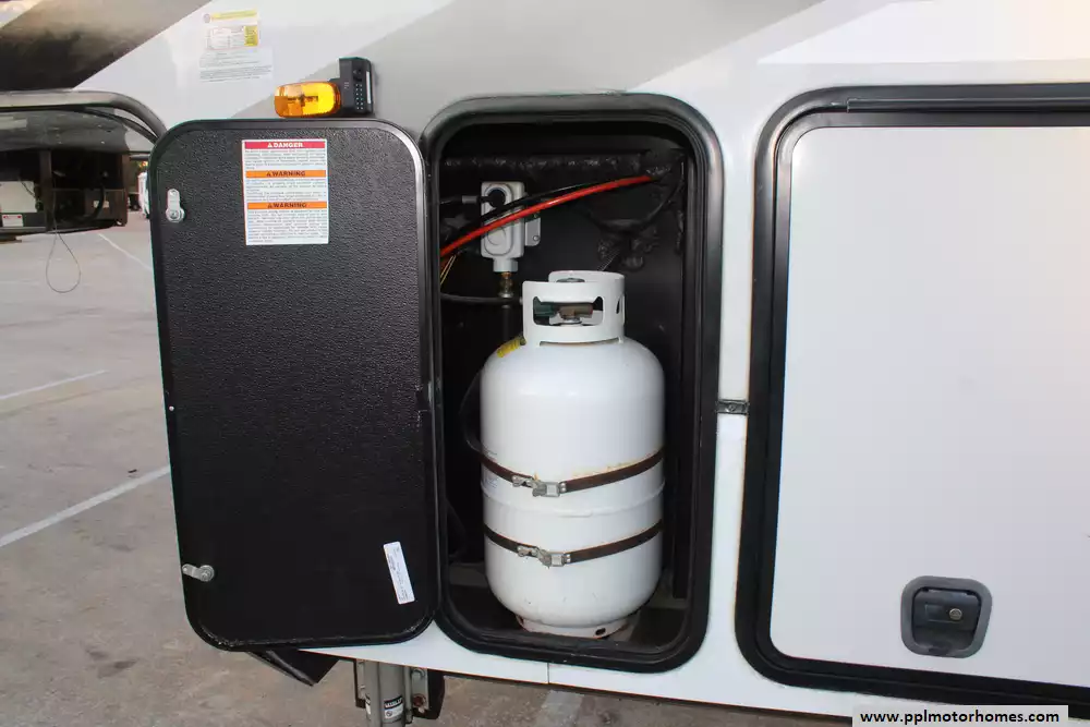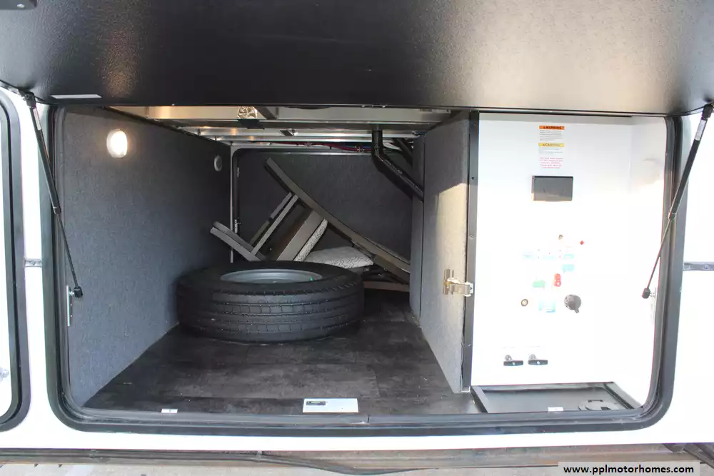 Specs: Length: 40.7 ft., Width: 8.5 ft., Height: 13.4 ft., Total Fresh Water Tank Capacity: 98 gal., Total Gray Water Tank Capacity: 106 gal., Total Black Water Tank Capacity: 53 gal., Total Propane Tanks: 2, Total Propane Tank Capacity: 60 lbs.