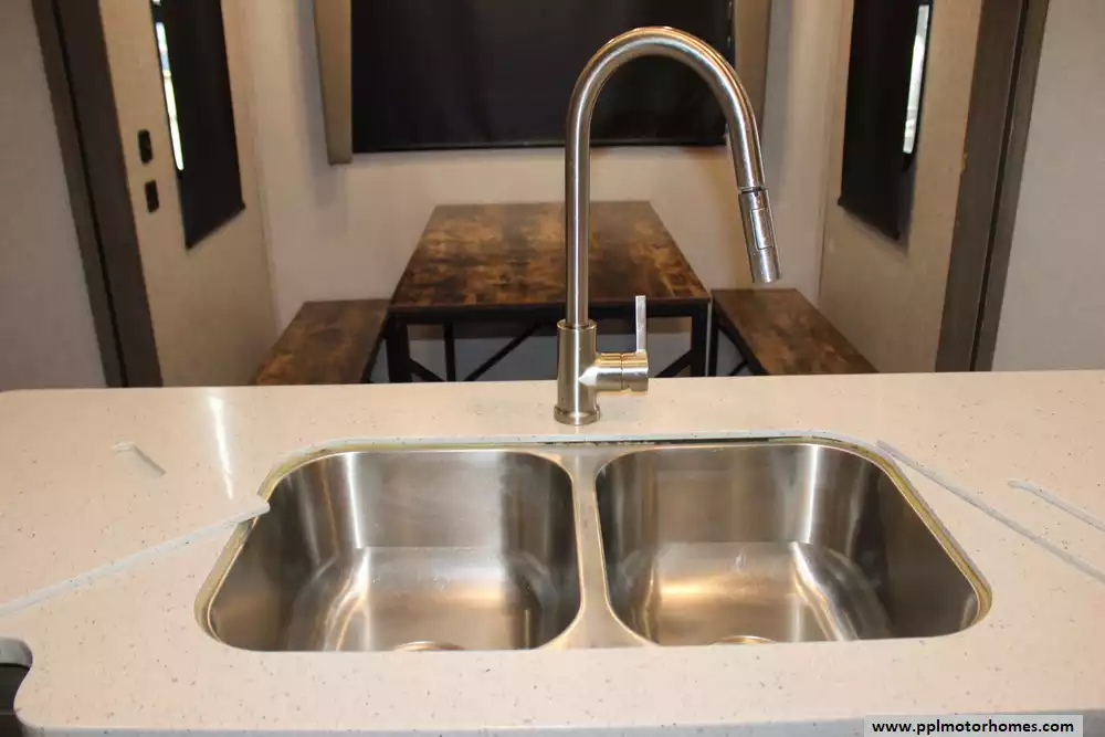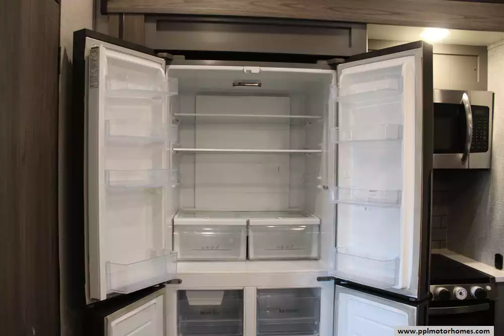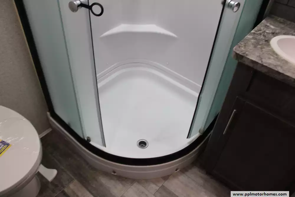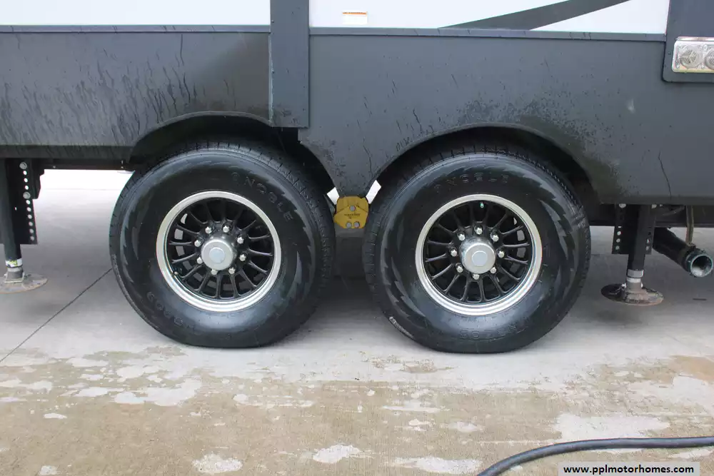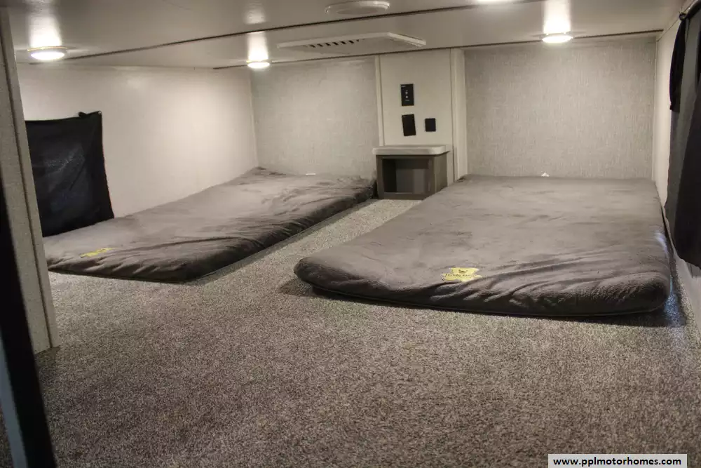 Specs: Length: 41.92 ft., Width: 8 ft., Height: 13.5 ft., Interior Height: 6.75 ft., Payload Capacity: 2,228 lbs., Total Fresh Water Tank Capacity: 64 gal., Total Gray Water Tank Capacity: 44 gal., Total Black Water Tank Capacity: 83 gal., Number of Propane Tanks: 2, Total Propane Tank Capacity: 60 lbs.