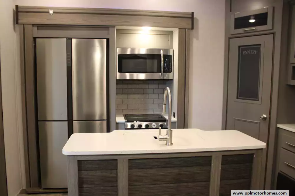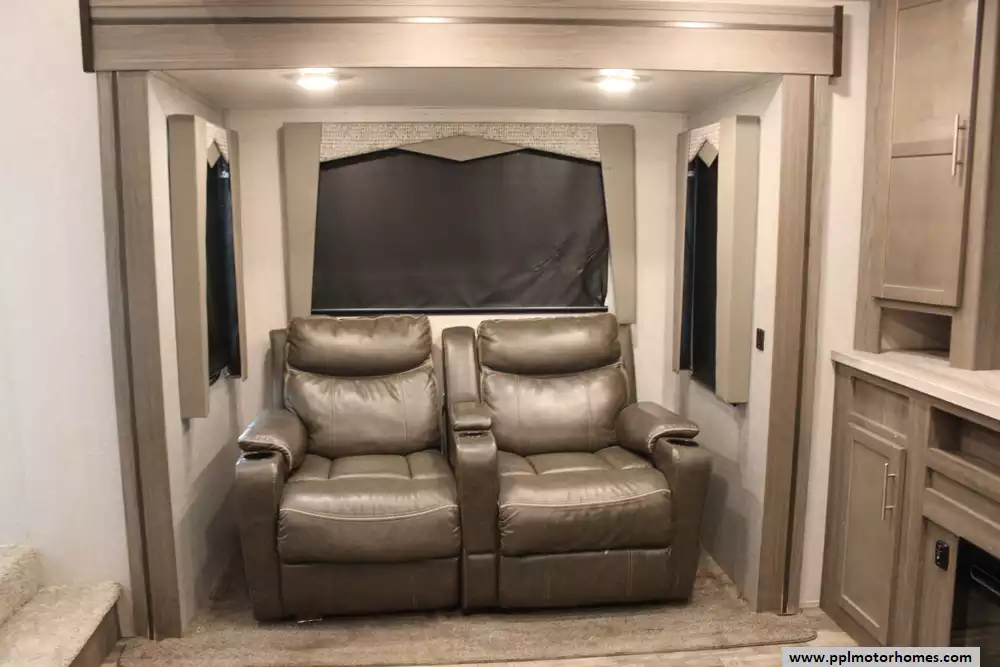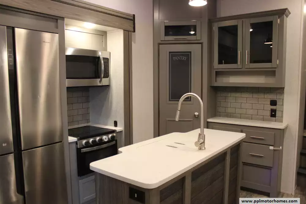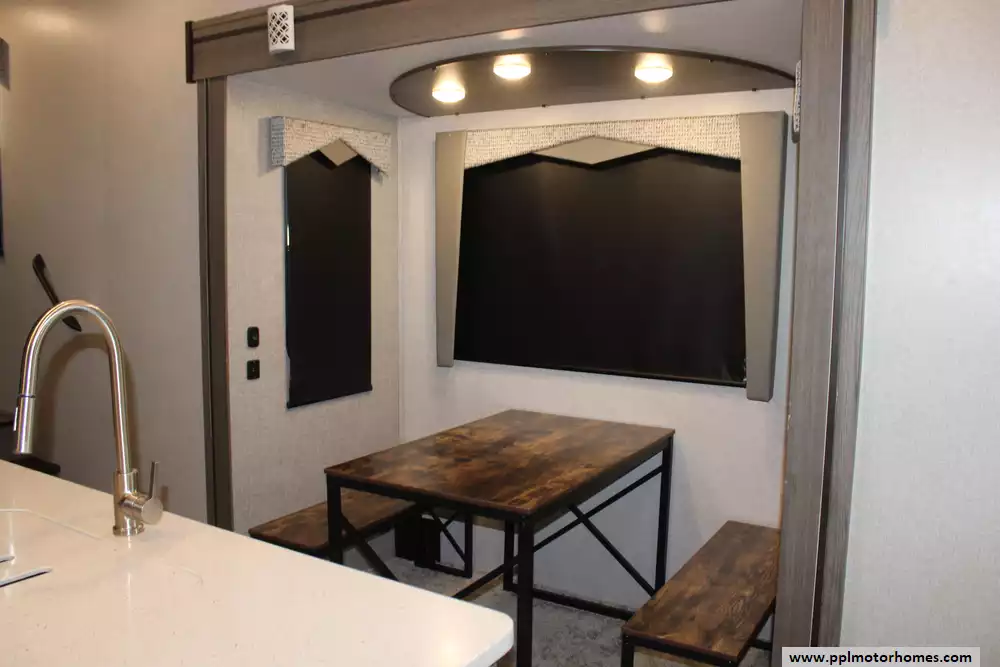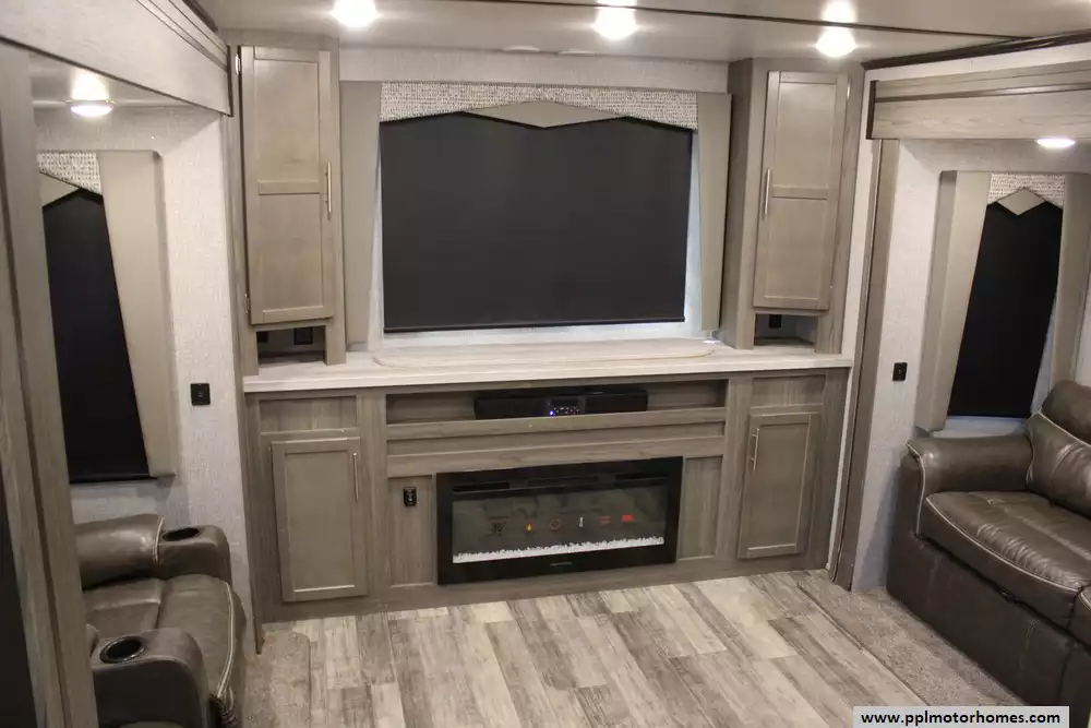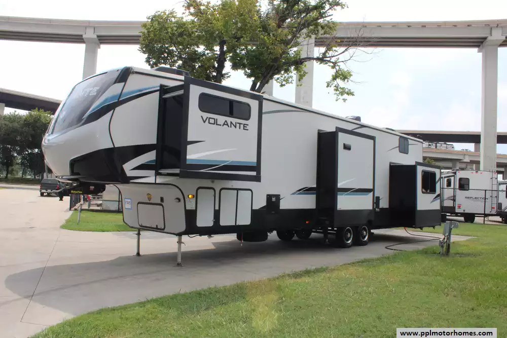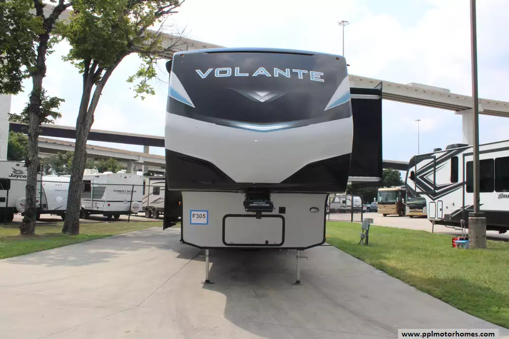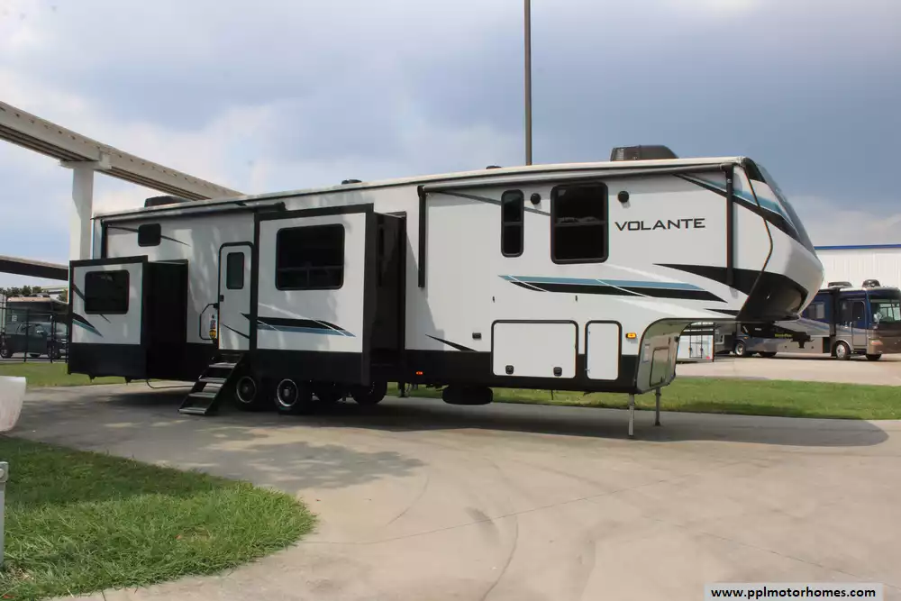 This 2021 Volante 3861BL a luxurious, fifth-wheel RV known for its spacious layout, multi-slide design, and family-friendly amenities. Features Include...5 Slide-outs, 4 Door Residential Refrigerator, Automatic Main Awning, Outside Speakers, TV, Outside Shower, Microwave, 3 Burner Range, and Oven.