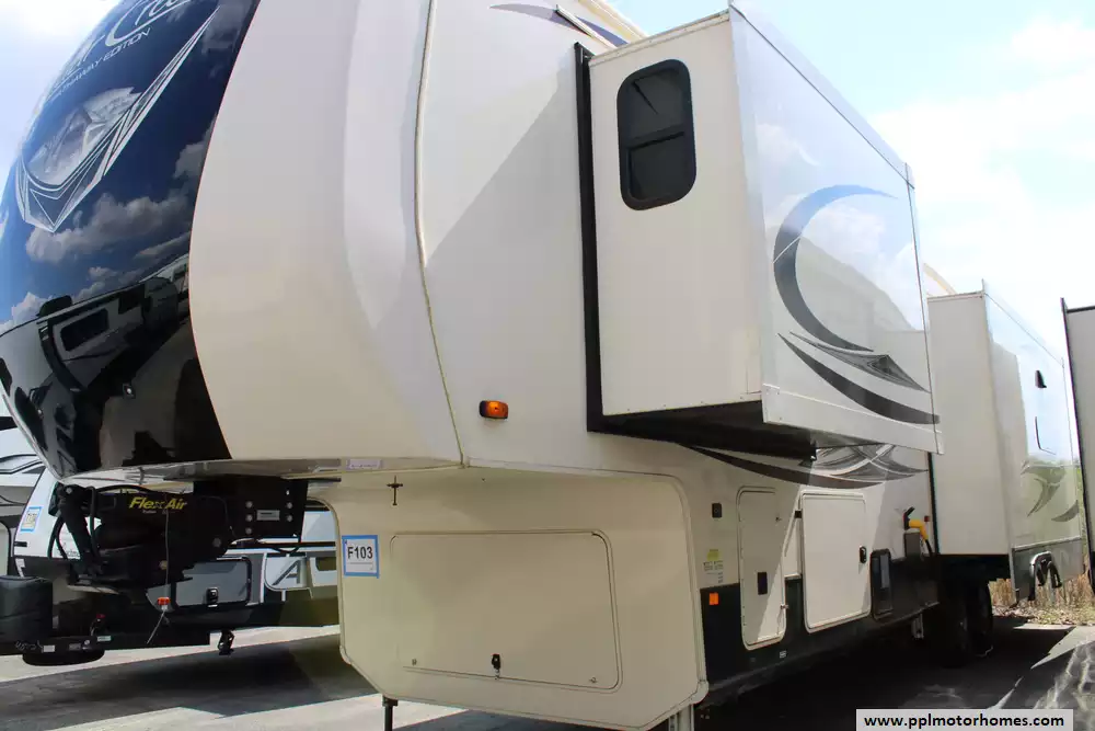 This 2021 Cedar Creek Hathaway 36CRK2 has a Hydraulic Landing Gear, 3 Slide-outs, 2 Ducted Air Conditioners, 4 Door Residential Insignia Refrigerator, In-Fridge Ice Maker, Automatic Main Awning, Washer/Dryer, Solar Panel, Outside Speakers, 2 TVs, Fireplace, Central Vacuum, Microwave, 4 Burner Range, Oven, Ceiling Fan, Back Up Camera, Pantry, Double Vanity, King Wifi,Leash Latch and TST Monitor.