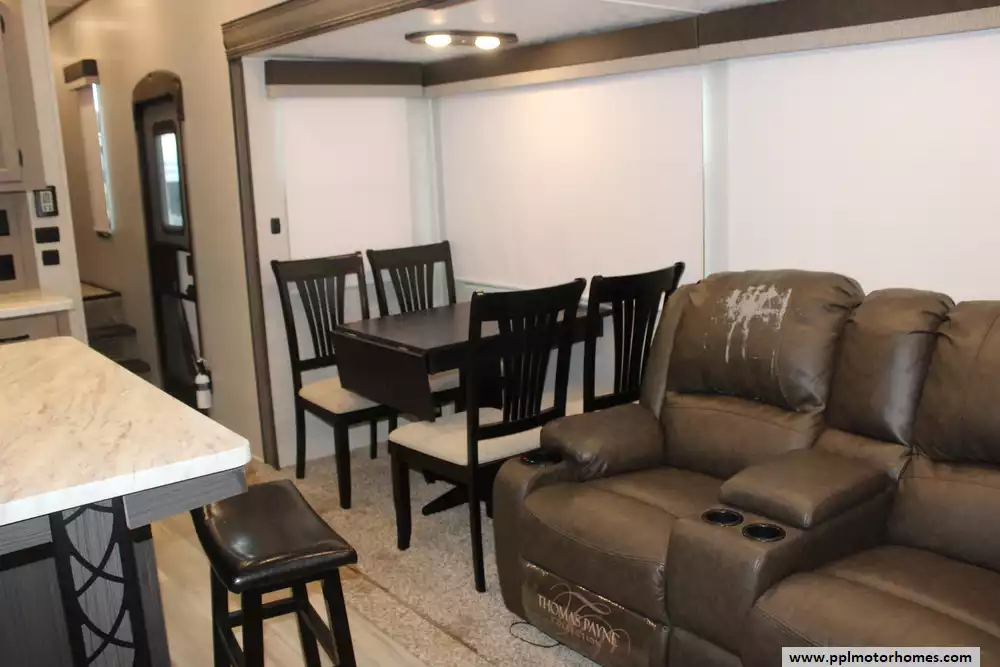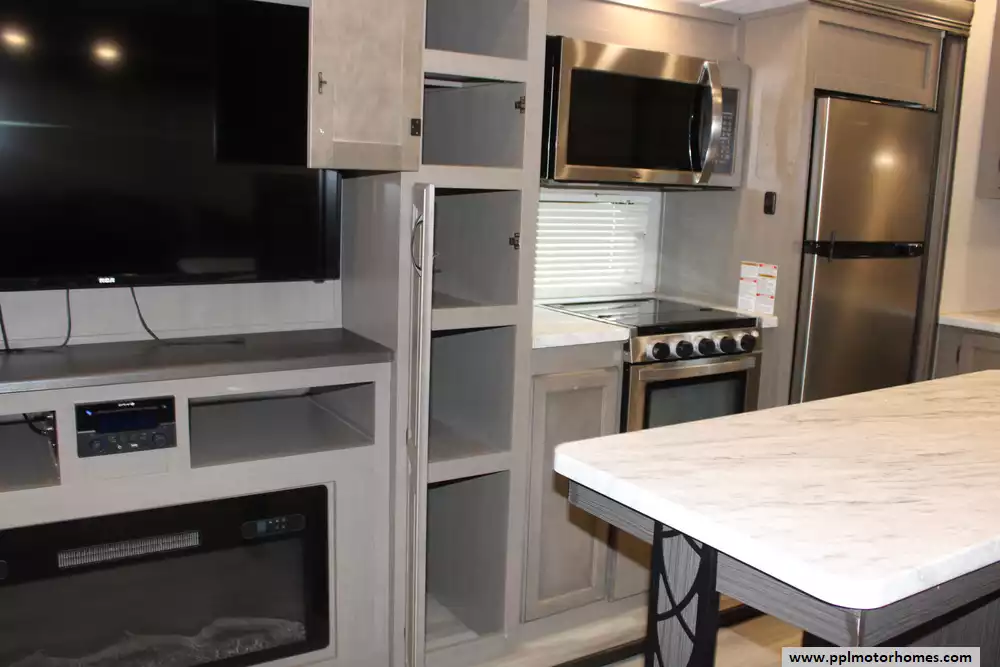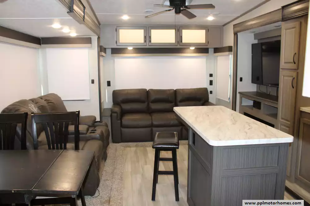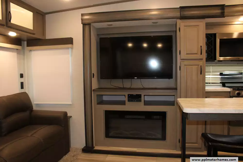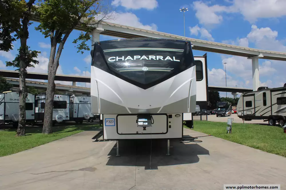 This 2021 Chaparral 360IBL is a robust and family-friendly fifth wheel, boasting thoughtful design and residential-level amenities. Features Include...4 Slide-outs, 2 Ducted Air Conditioners, Double Door Residential Everchill Refrigerator, Automatic Main Awning, Washer/Dryer Connections, Outside Speakers, TV, DVD Player, Outside Shower, Fireplace, Microwave, 3 Burner Range, and Oven.