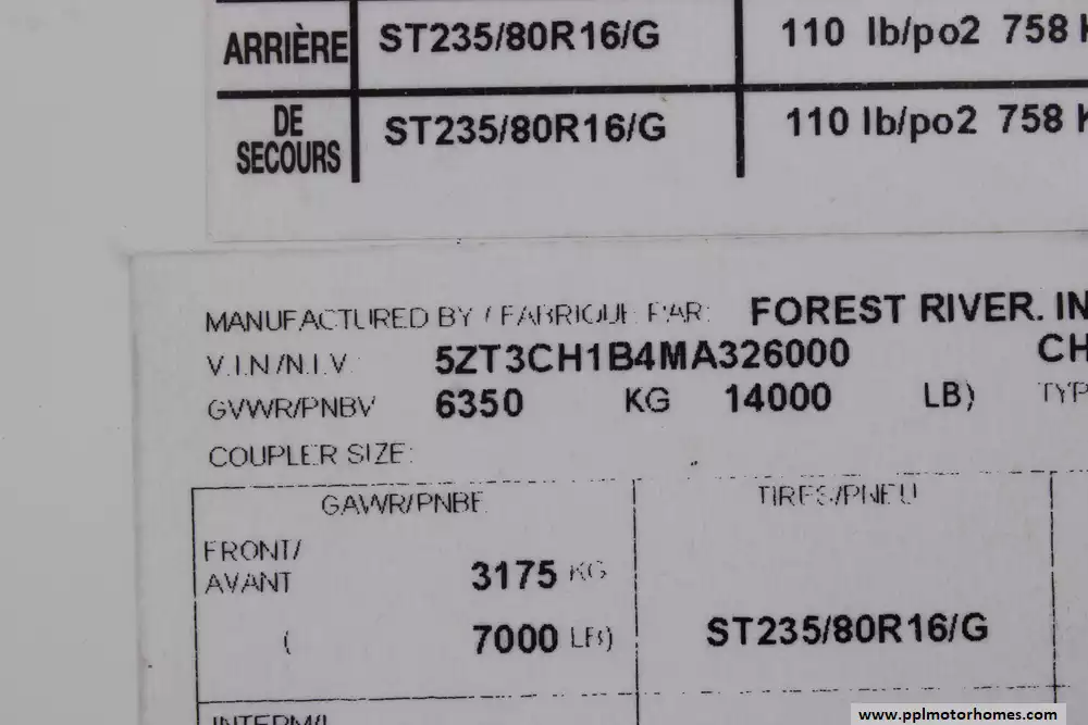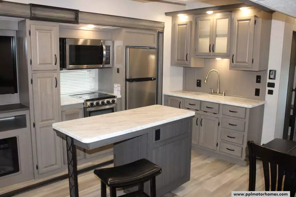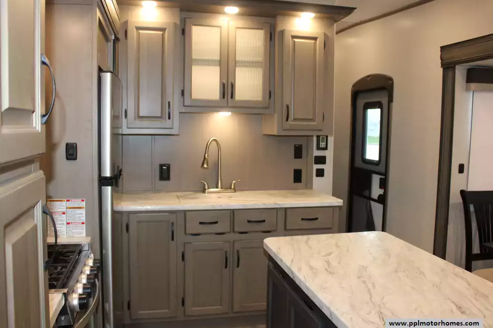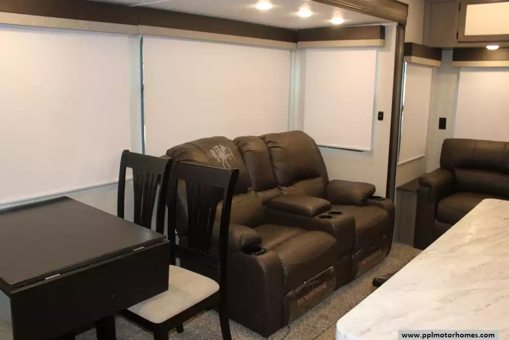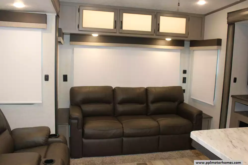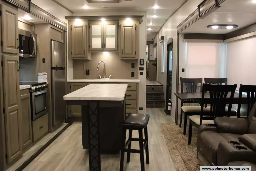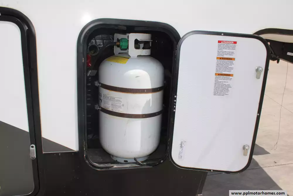 Specs: Length: 39 ft., Width: 8 ft., Height: 12.33 ft., Payload Capacity: 2,551 lbs., Total Fresh Water Tank Capacity: 48 gal., Total Gray Water Tank Capacity: 90 gal., Total Black Water Tank Capacity: 45 gal., Number of Propane Tanks: 2, Total Propane Tank Capacity: 60 lbs.