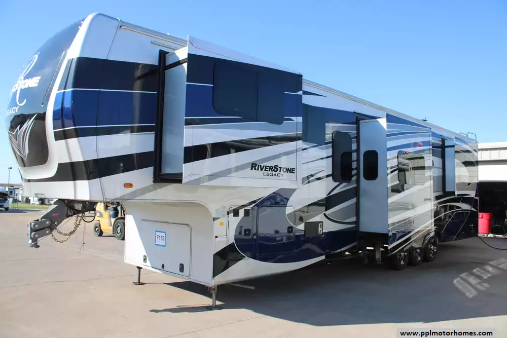 F155CL - 45' 2021 Forest River Riverstone Legacy 42FSKG w/5 Slides & Generator - Toy Hauler