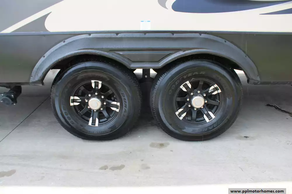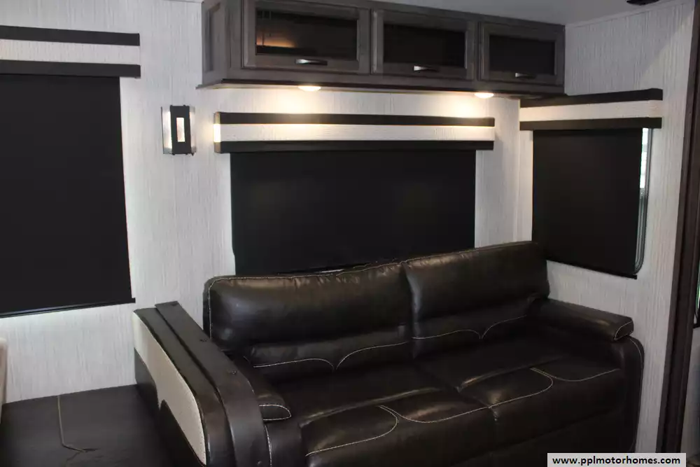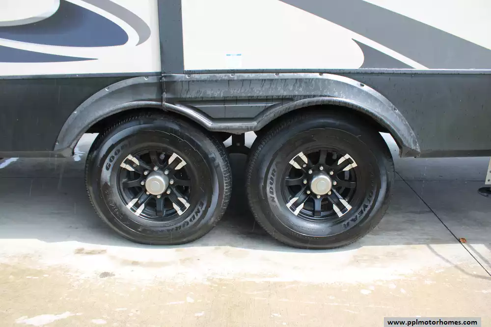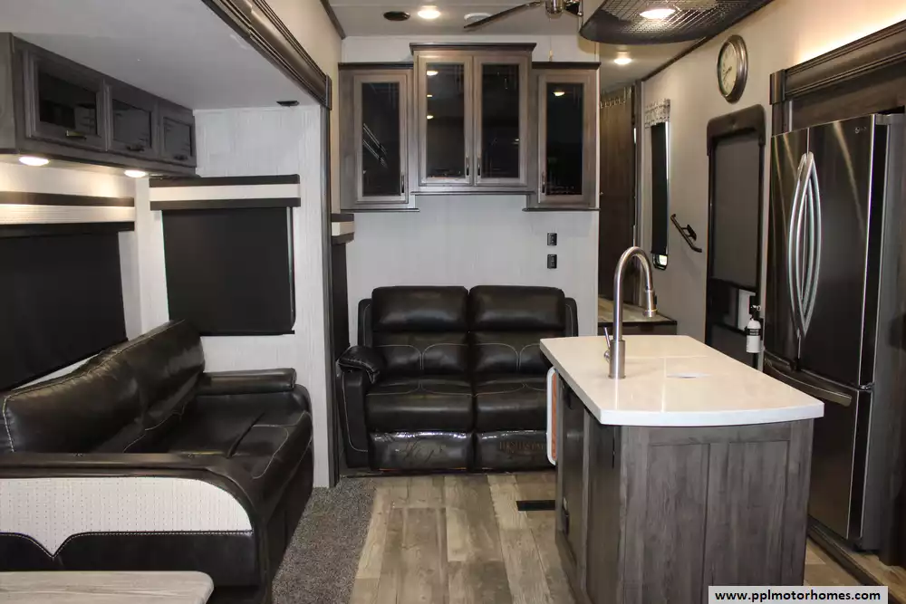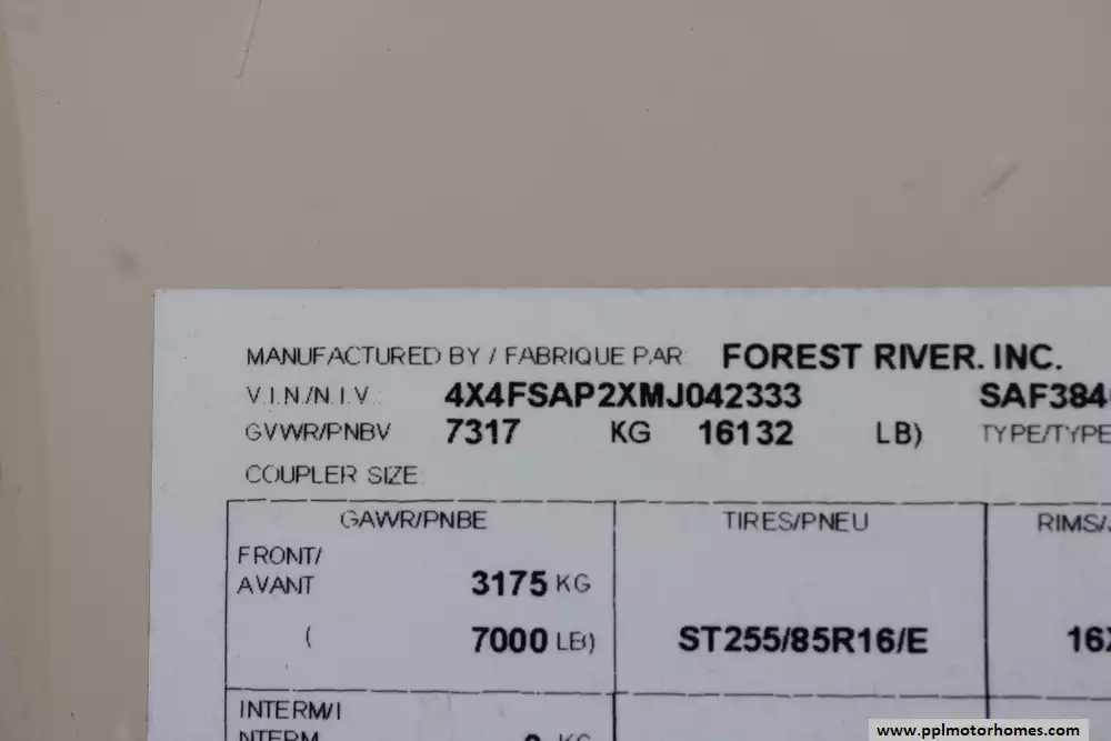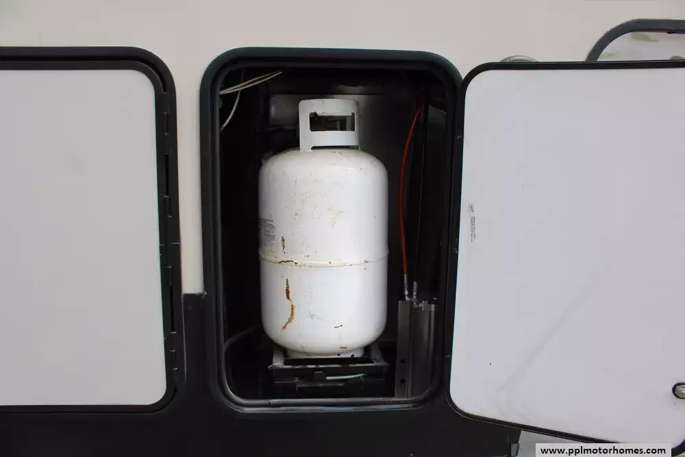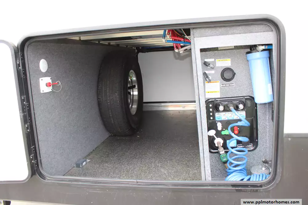Specs: Length: 41.67 ft., Width: 8 ft., Height: 13.42 ft., Interior Height: 7 ft. Payload Capacity: 3,000 lbs., Total Fresh Water Tank Capacity: 50 gal., Total Gray Water Tank Capacity: 134 gal., Total Black Water Tank Capacity: 104 gal., Number of Propane Tanks: 2, Total Propane Tank Capacity: 60 lbs.