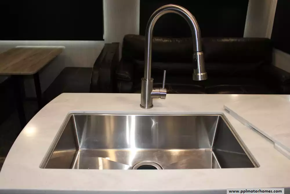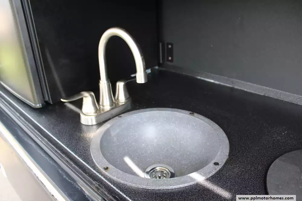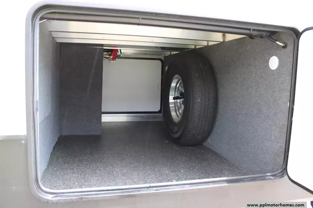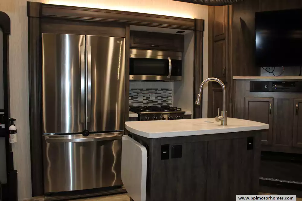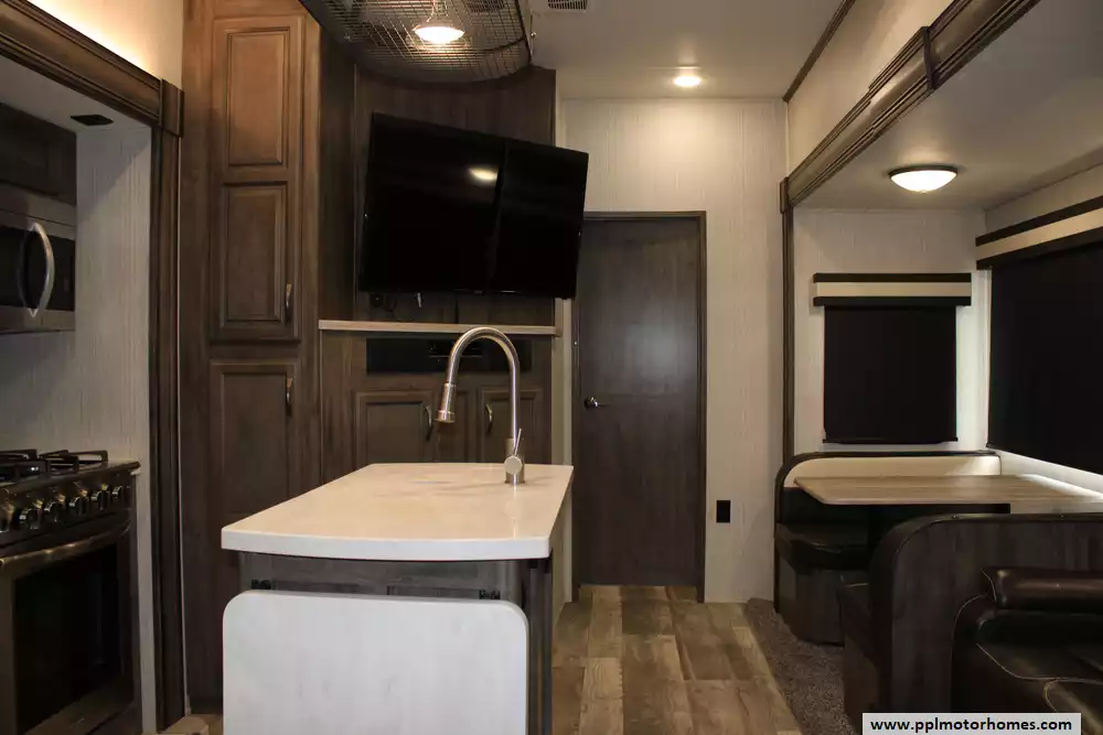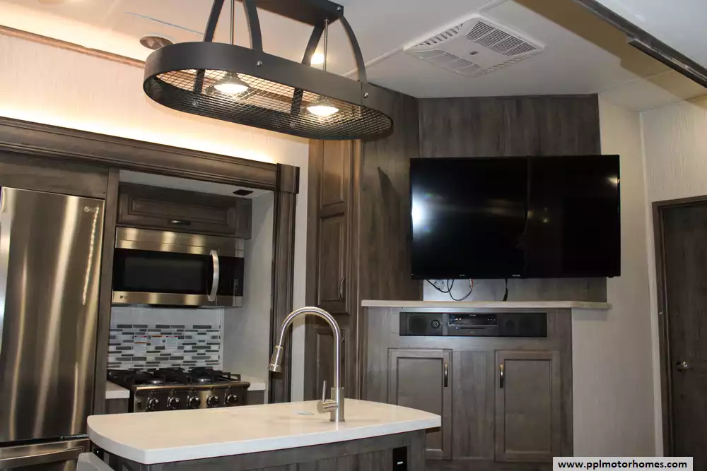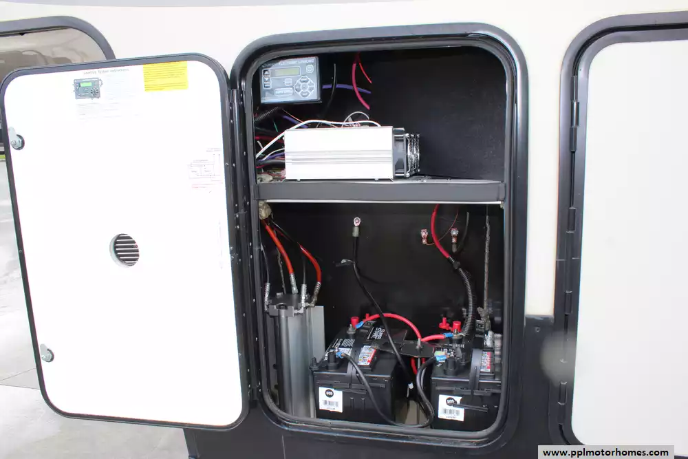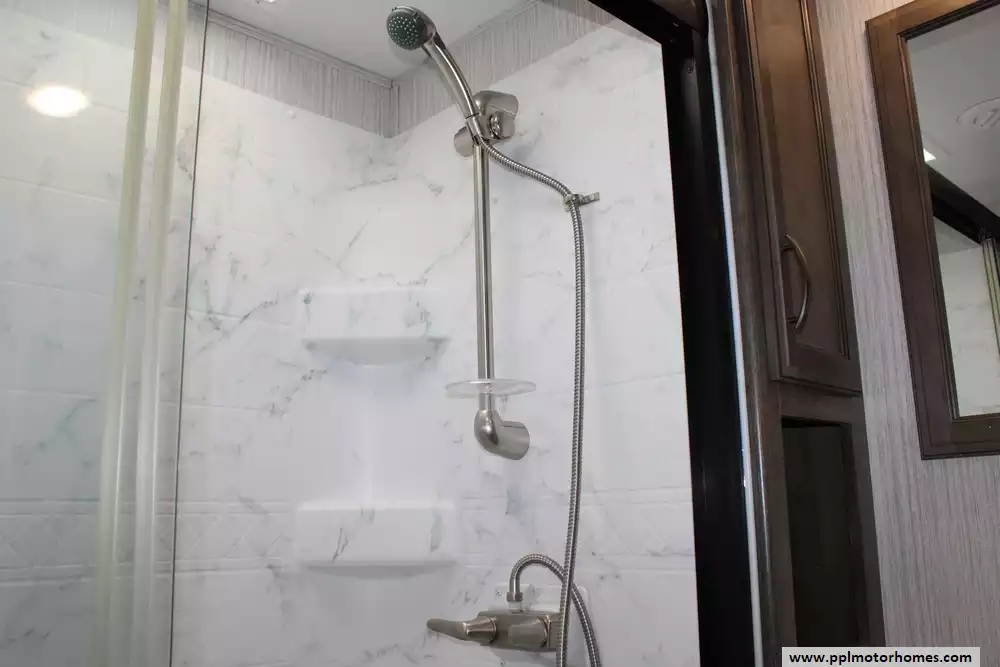 Specs: Length: 41.67 ft., Width: 8 ft., Height: 13.42 ft., Interior Height: 7 ft. Payload Capacity: 3,000 lbs., Total Fresh Water Tank Capacity: 50 gal., Total Gray Water Tank Capacity: 134 gal., Total Black Water Tank Capacity: 104 gal., Number of Propane Tanks: 2, Total Propane Tank Capacity: 60 lbs.