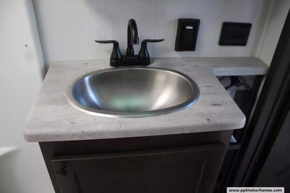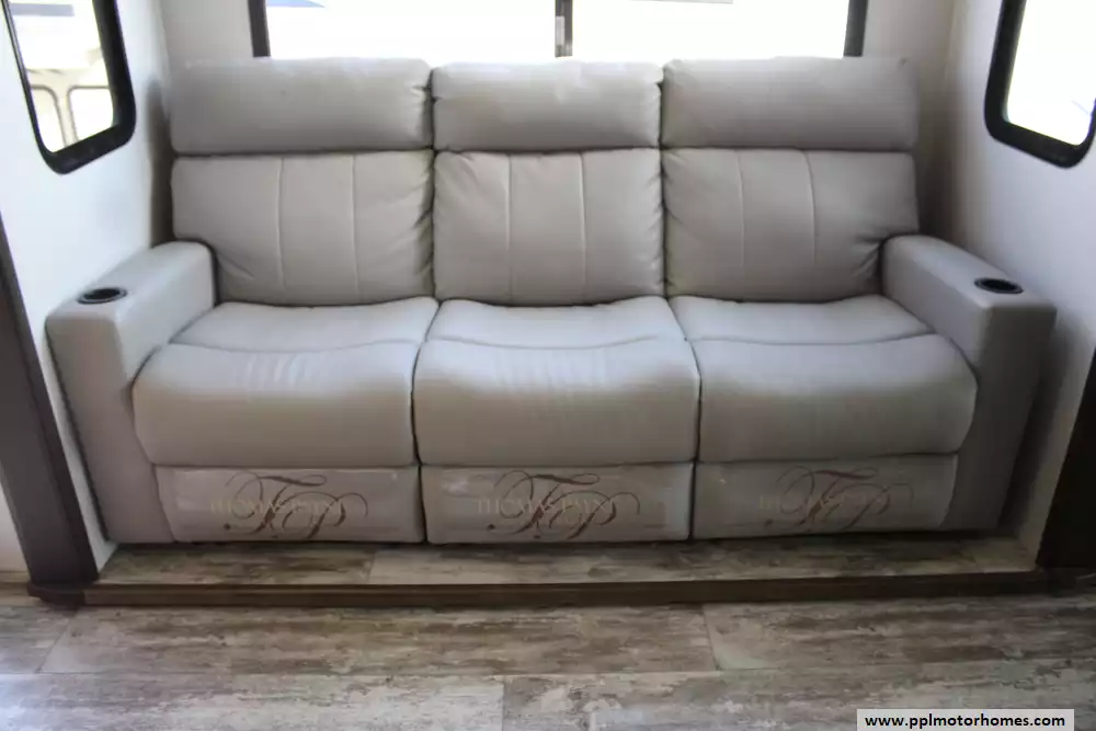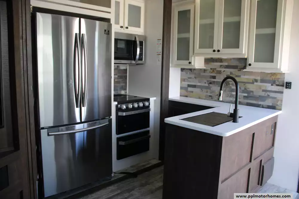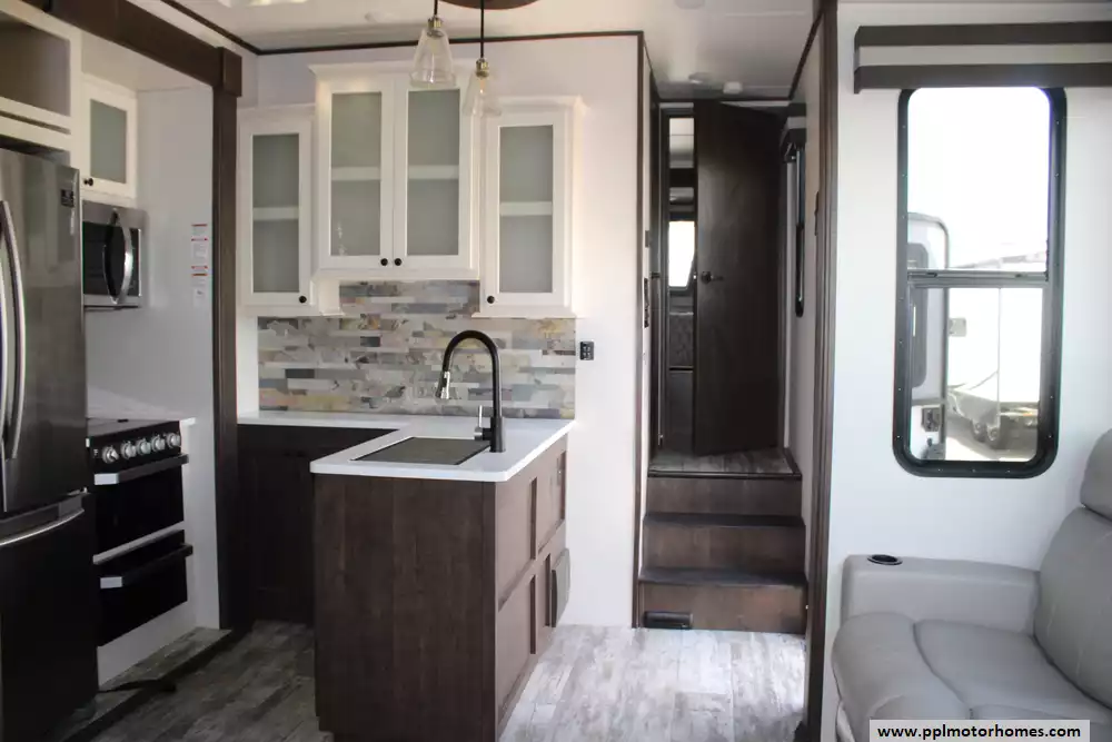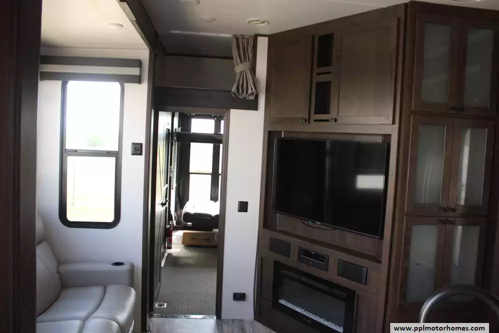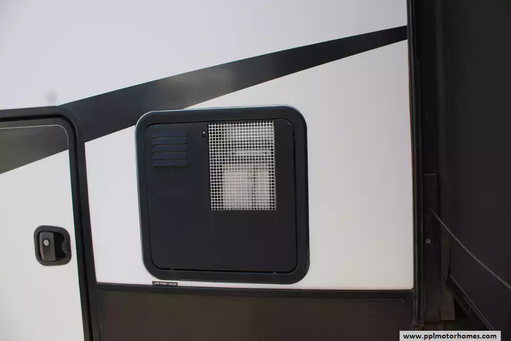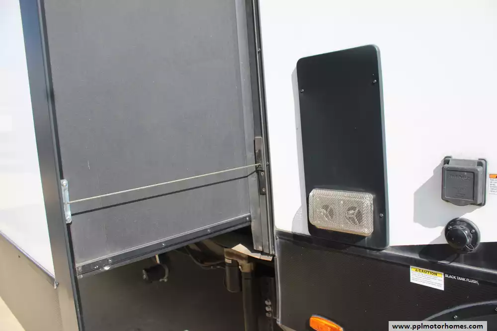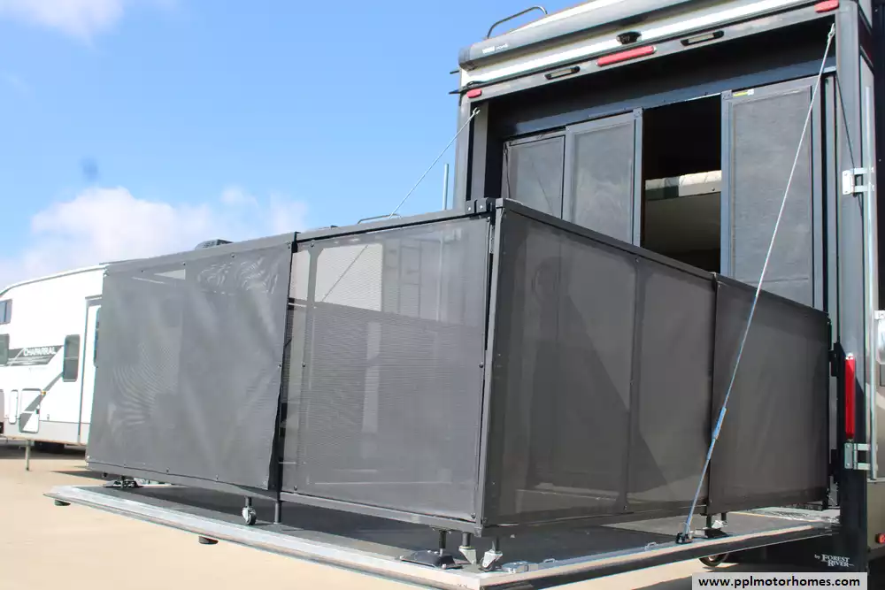 With dual bathrooms, generous tank capacities (including a 102-gallon fresh water tank), and a 15,000 BTU air conditioner, it is well-suited for extended trips or off-grid use. Combining rugged cargo capability with upscale interior amenities and ample sleeping space, the Nitro 351 offers a practical yet comfortable solution for travelers who want to bring along ATVs, motorcycles, or other gear without sacrificing livability. This XLR Nitro also has a brand-new roof!