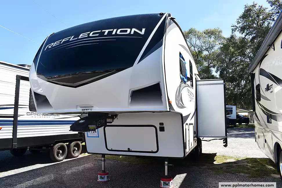 This 2021 Reflection 150 268BH has a 1 Slide-out, 1 Ducted Air Conditioner, Double Door Gas/12v Dometic Refrigerator, Automatic Main Awning, Satellite Receiver, Outside Speakers, TV, Outside Shower, Microwave, 3 Burner Range, Oven
