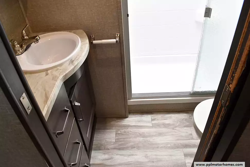 (Floor plan is NOT drawn to scale. Length of vehicle is approximate. Buyer is responsible for verifying actual length. PPL Motor Homes compiled this list of features, specifications, equipment and options as a guide. No representation or warranties, either express or implied, are made as to the accuracy of the information herein. Please verify for yourself all items listed before purchase.)