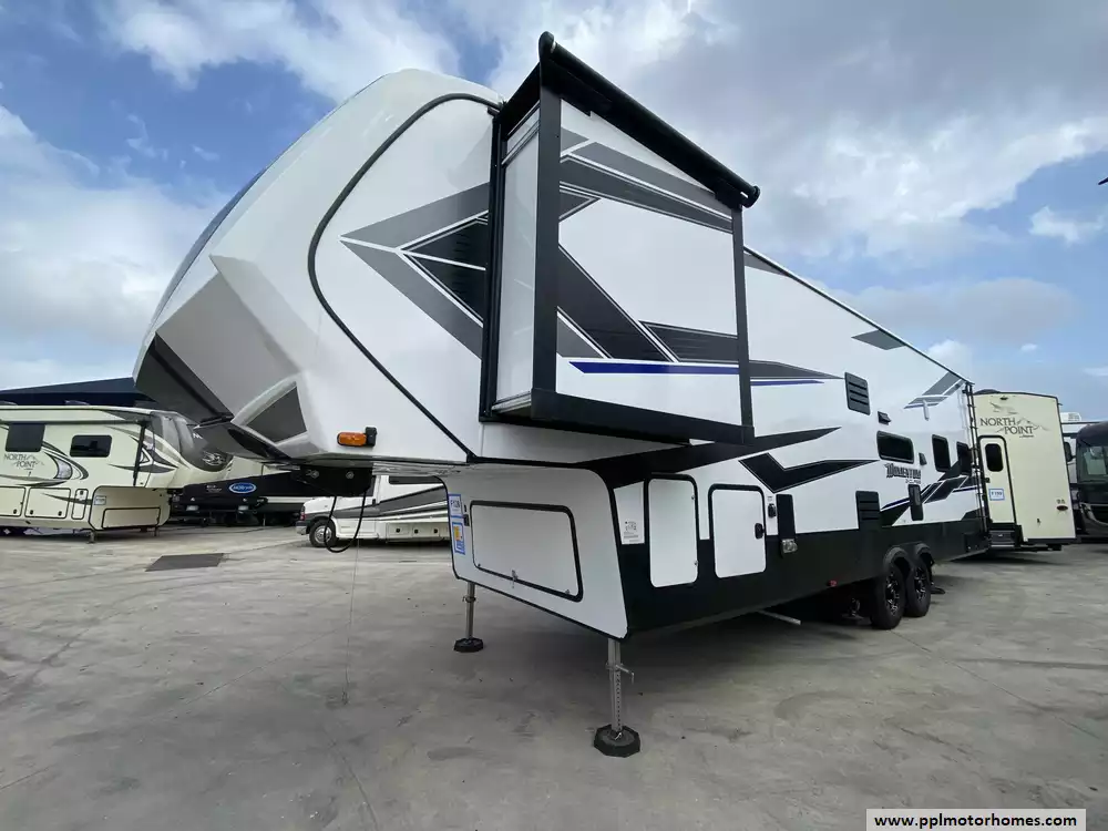 This 2021 Momentum 328 G has an Electric Landing Gear, 2 Slide-outs, Onan Gas Generator, 2 Ducted Air Conditioners, Double Door Residential Samsung Refrigerator, In-Fridge Ice Maker, Automatic Main Awning And Slide Awning, Outside Speakers, Outside Shower, Fireplace, Microwave, 3 Burner Range, Oven, Parsec Husky Pro 7 in 1 5g Omni Directional antenna with Pepwave max transit, Duo cat 12 router LTEA cellular modem, Also RV Armor New Roof, Unit also has brackets for 10 Solar panels, Rear and side cameras with Montior