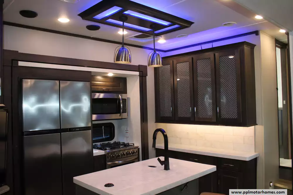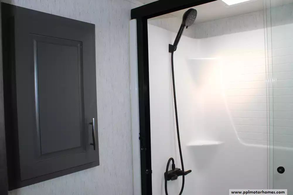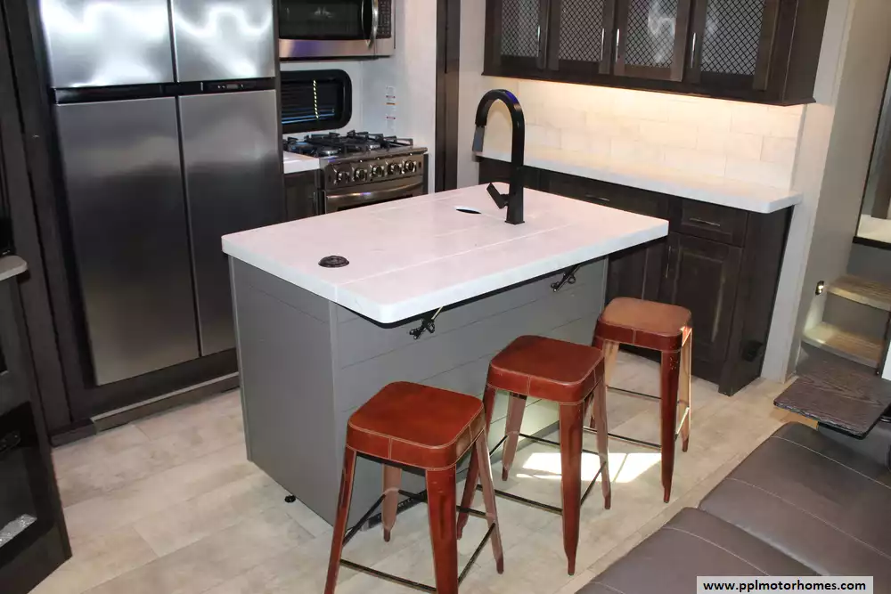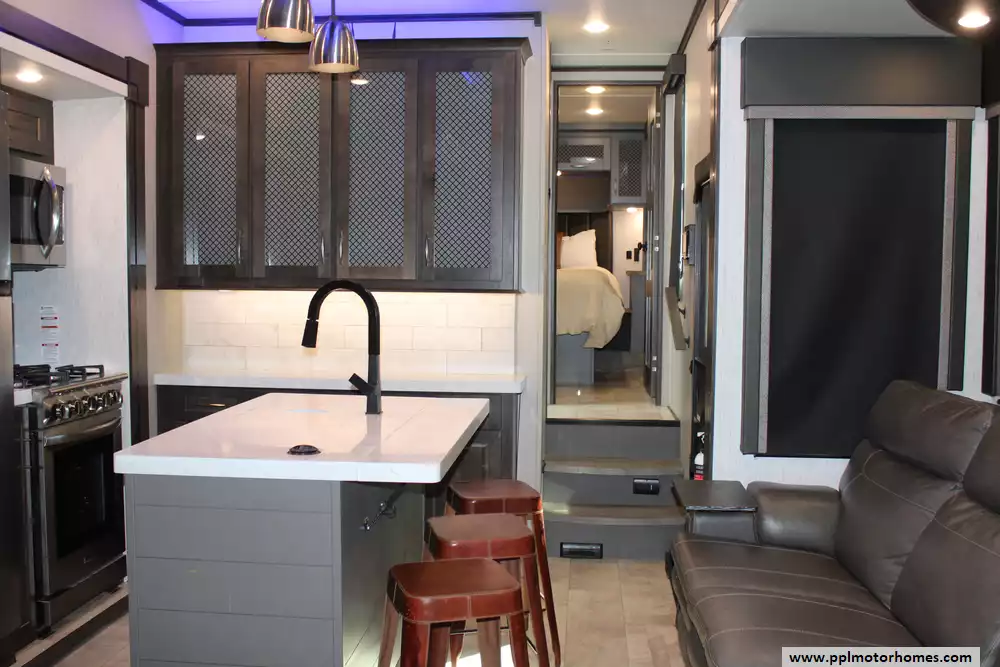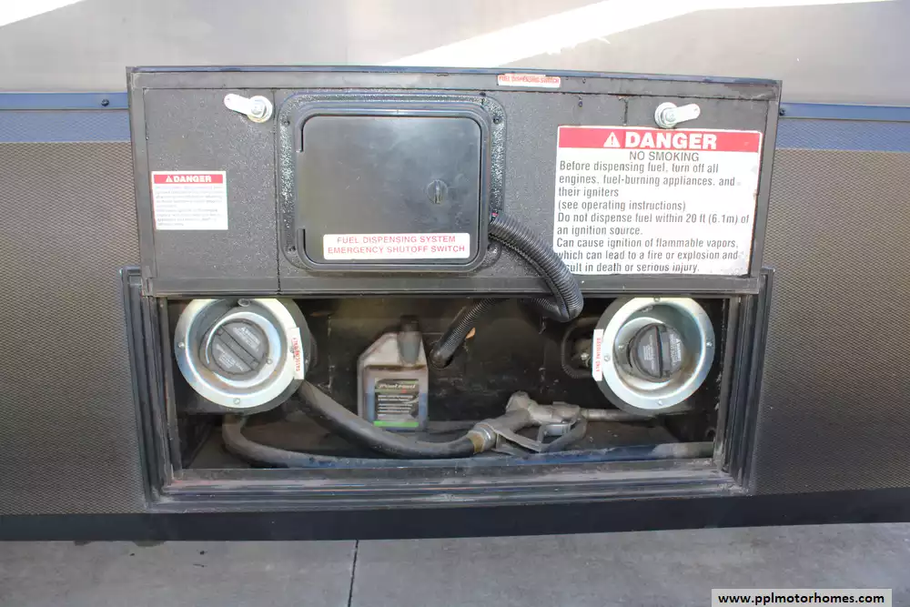 Specs: Length: 42.9 ft., Height: 13.5 ft., Fuel Capacity: 60 lbs., Total Fresh Water Tank Capacity: 155 gal., Total Gray Water Tank Capacity: 78 gal., Total Black Water Tank Capacity: 78 gal., Total Number of Propane Tanks: 2, Total Propane Tank Capacity: 60 lbs.