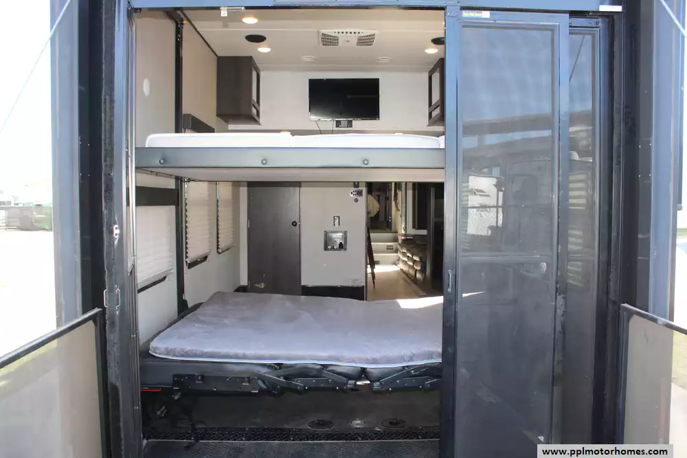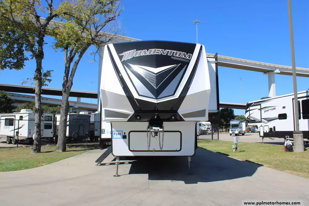 This 2021 Momentum Toy Hauler 381M is a strong choice for weekend warriors, families, or even extended travel. Features Include...3 Slide-outs, Onan Gas Generator, 3 Ducted Air Conditioners, 4 Door Gas/110v Norcold Refrigerator, Automatic Main Awning, Washer/Dryer Connections, Heated Tanks, Outside Entertainment System, Outside Shower, Microwave, 4 Burner Range, and Oven.