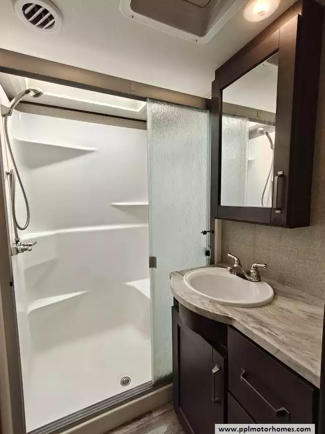 (Floor plan is NOT drawn to scale. Length of vehicle is approximate. Buyer is responsible for verifying actual length. PPL Motor Homes compiled this list of features, specifications, equipment and options as a guide. No representation or warranties, either express or implied, are made as to the accuracy of the information herein. Please verify for yourself all items listed before purchase.)